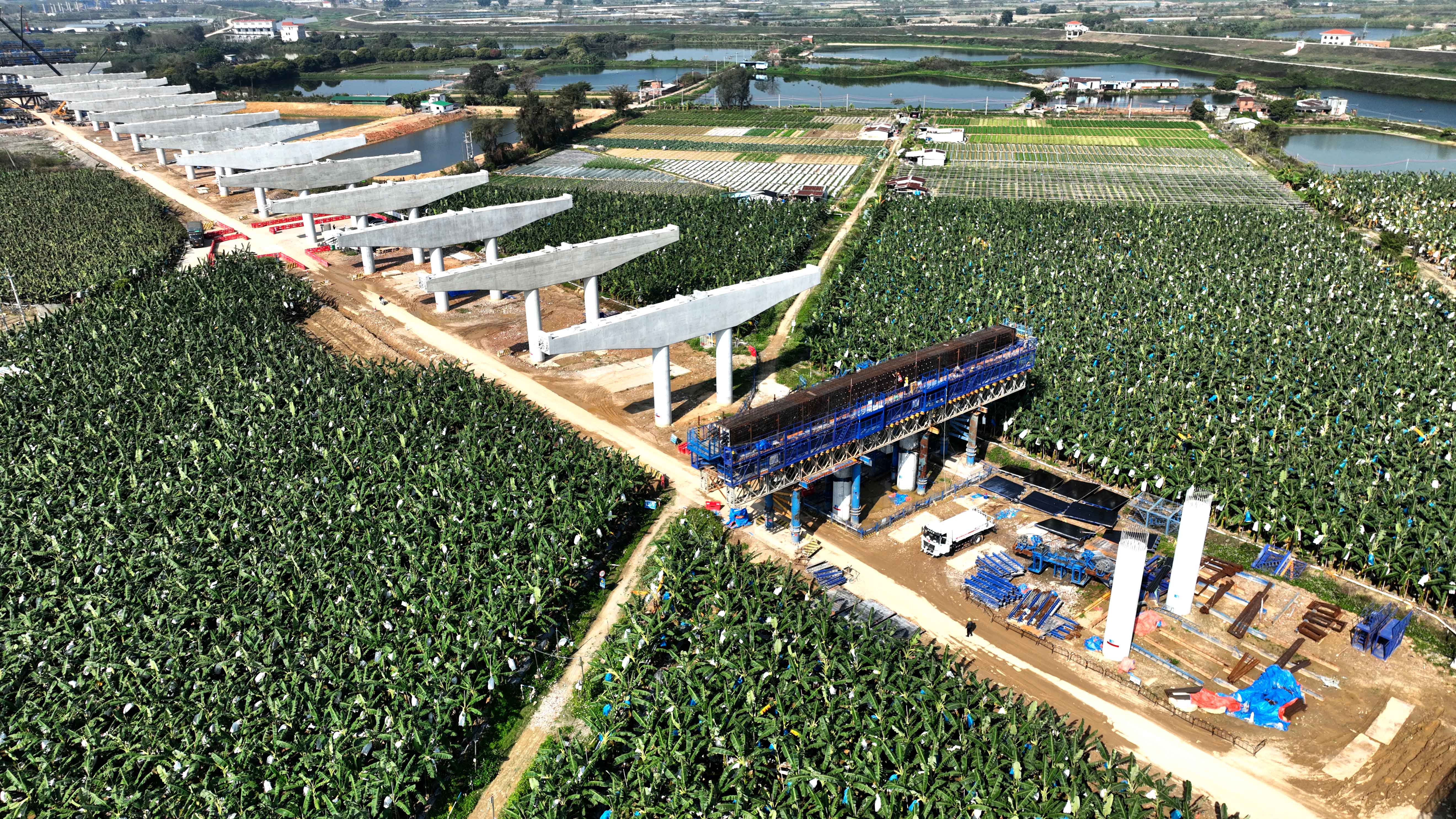 這是惠肇高速石灣鎮(zhèn)路段,采用雙柱大懸臂蓋梁的結(jié)構(gòu)形式施工,增加橋下利用空間。