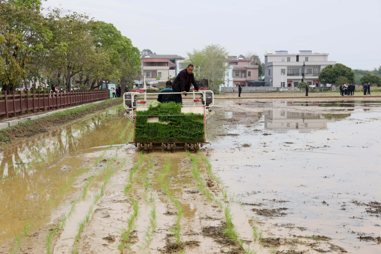 插秧機(jī)在插秧。惠州日報(bào)記者楊建業(yè) 攝