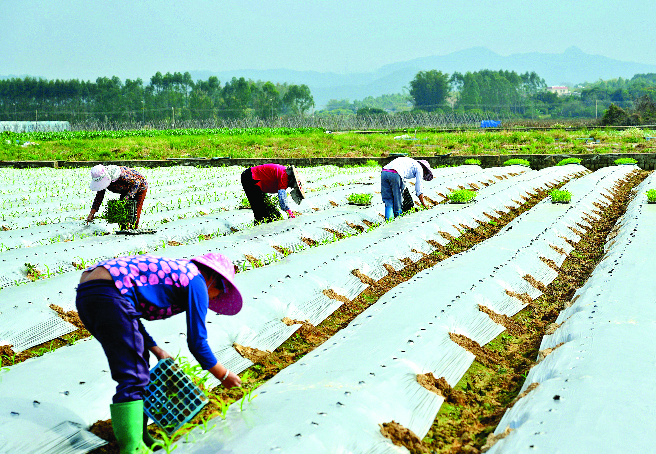 村民彎腰播種。