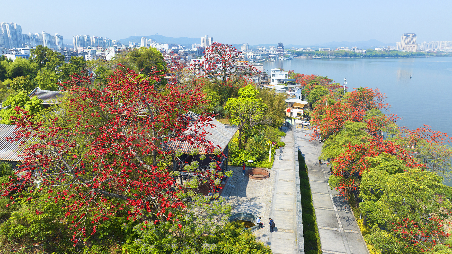 木棉花開,春意盎然。3月21日,鵝城春日,惠州蘇東坡祠的木棉花熱烈綻放,一樹樹火紅的花朵,將惠州蘇東坡祠映襯得格外壯麗,吸引游客紛至沓來(lái)。
