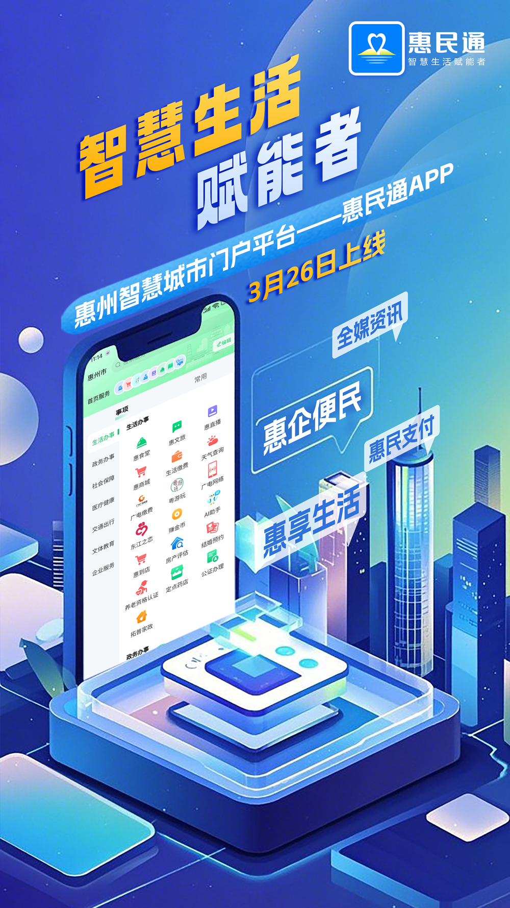 惠州日?qǐng)?bào)訊 (記者游璇鈺)“惠民通”智慧城市門戶平臺(tái)即將重磅登場(chǎng)!由中共惠州市委宣傳部、惠州市政務(wù)服務(wù)和數(shù)據(jù)管理局指導(dǎo),惠州日?qǐng)?bào)社與惠州市廣播電視臺(tái)聯(lián)合打造的“惠民通”客戶端,將于3月26日正式上線啟用。