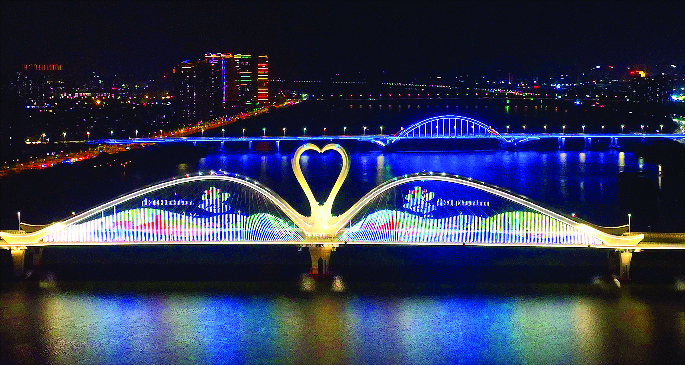 3月26日晚,鵝城大橋等城市地標(biāo)亮燈,以燈光秀展示惠州城市品牌形象標(biāo)識等內(nèi)容。惠州日報記者鐘暢新 攝
