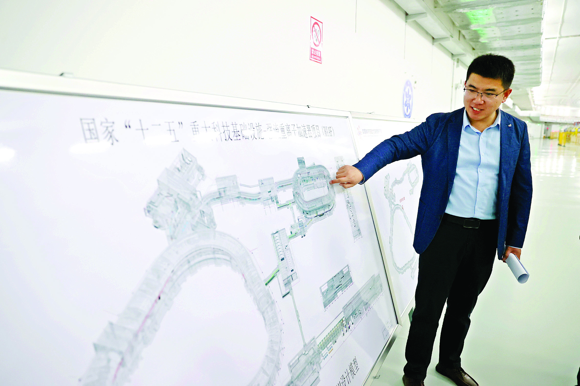 中國科學(xué)院近代物理研究所工程師、HIAF現(xiàn)場(chǎng)安裝負(fù)責(zé)人王儒亮介紹HIAF的建設(shè)情況。