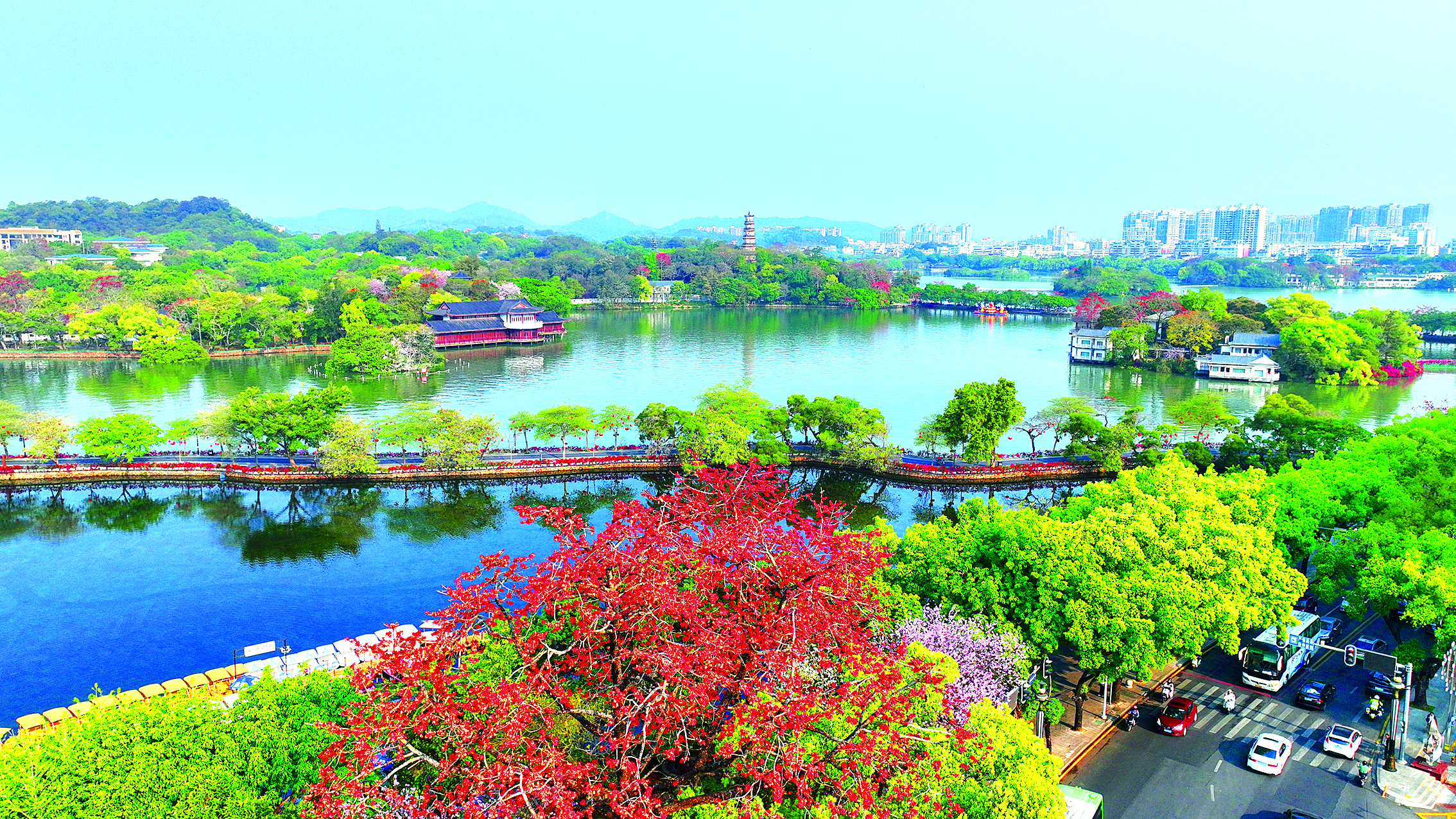 春意盎然的惠州西湖畔,正上演著姹紫嫣紅的春日盛宴。木棉花、宮粉紫荊與三角梅熱情綻放,將西湖裝點(diǎn)成流動(dòng)的調(diào)色盤,吸引眾多游客前來踏青賞花。惠州日?qǐng)?bào)記者鐘暢新 攝