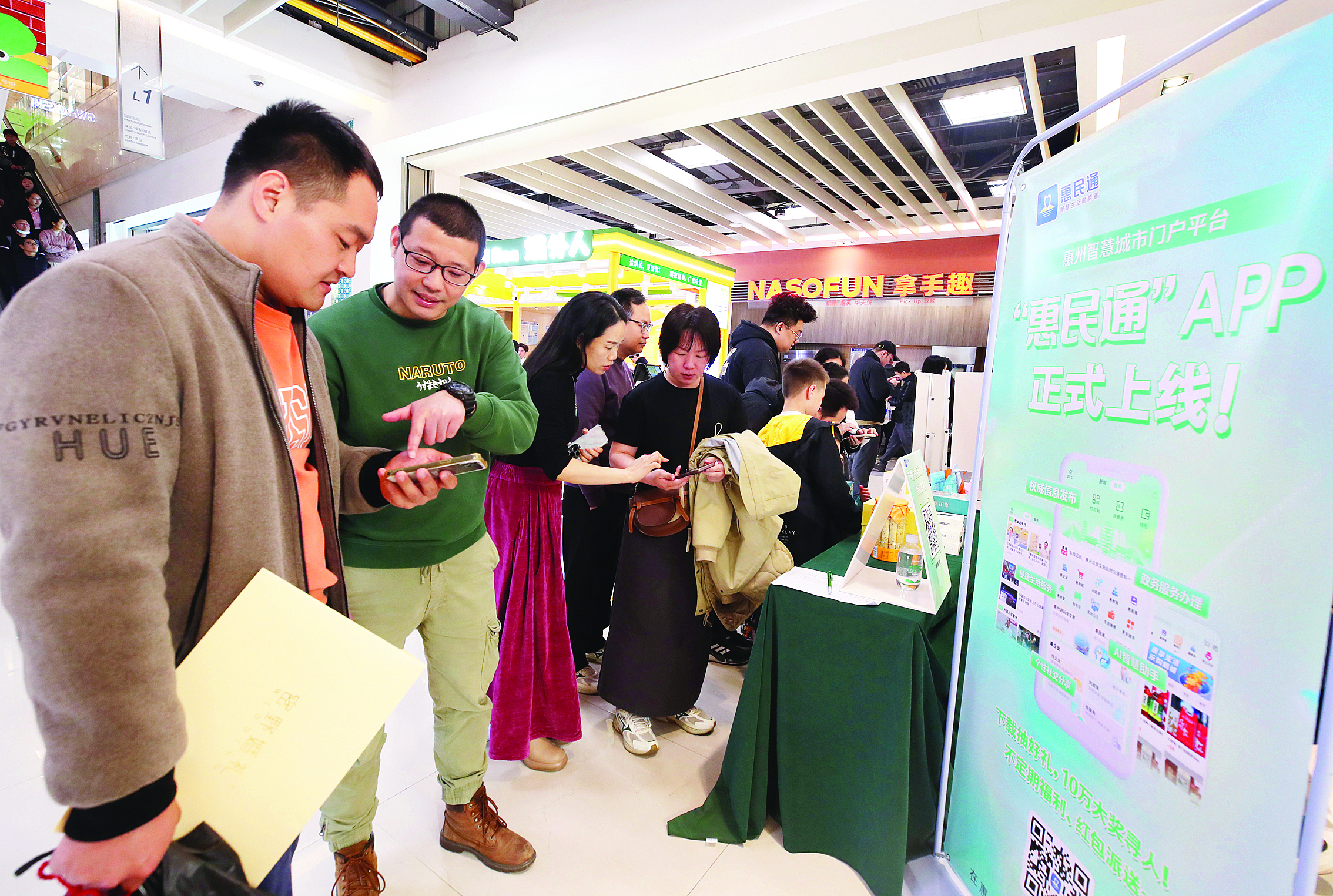 3月29日,在推廣活動現(xiàn)場,不少市民下載惠民通APP進(jìn)行體驗;葜萑請笥浾哏姇承 攝