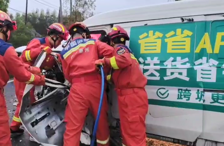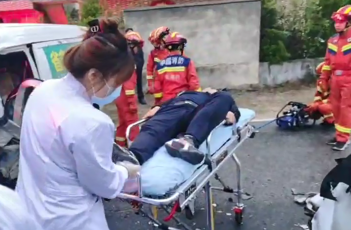 據(jù)了解,現(xiàn)場為兩輛面包車相撞,其中一車因劇烈撞擊導(dǎo)致駕駛室嚴(yán)重變形,駕駛員被困駕駛室內(nèi),左腿被變形操控臺緊緊卡住無法脫身。