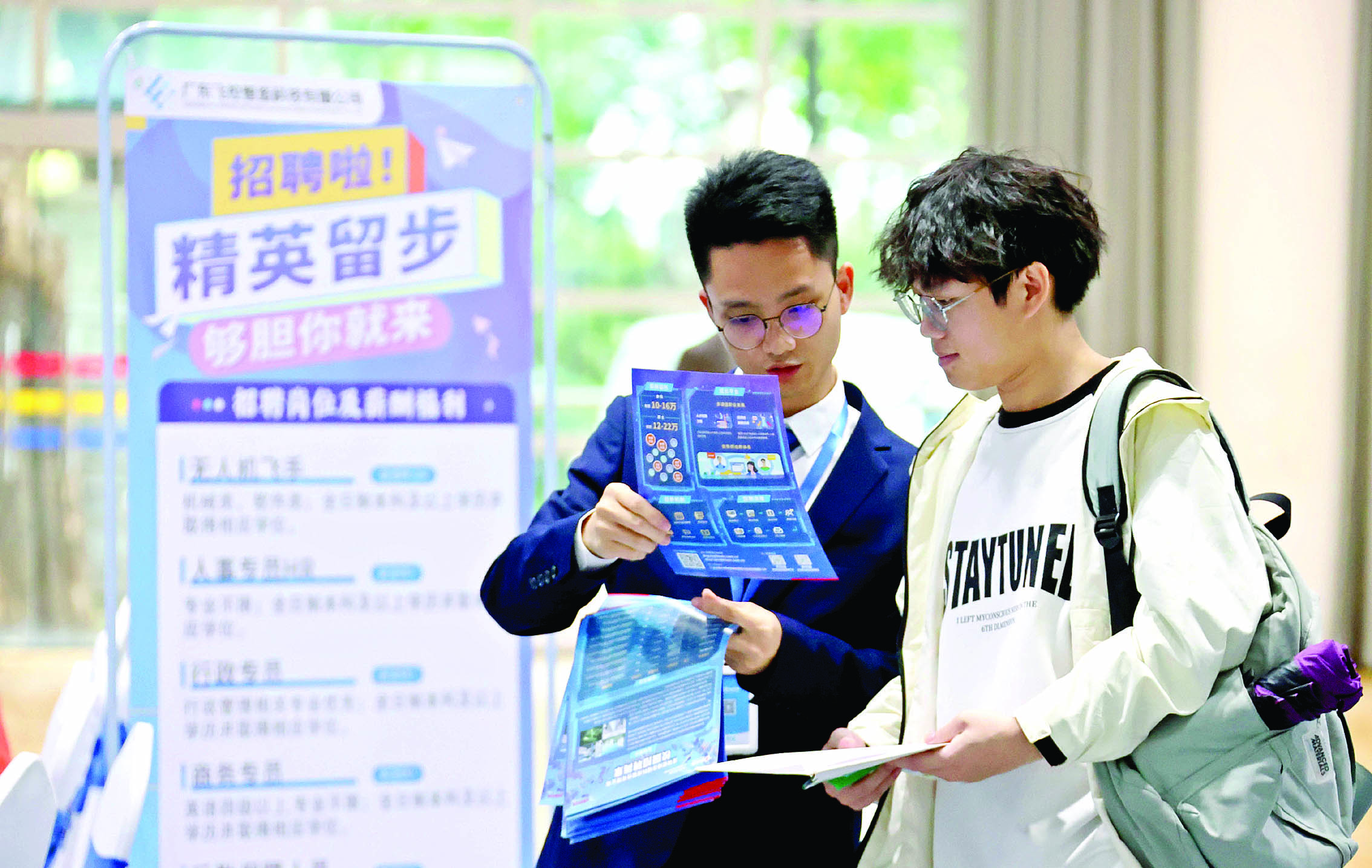 招聘人員向求職者介紹企業(yè)情況及崗位需求。