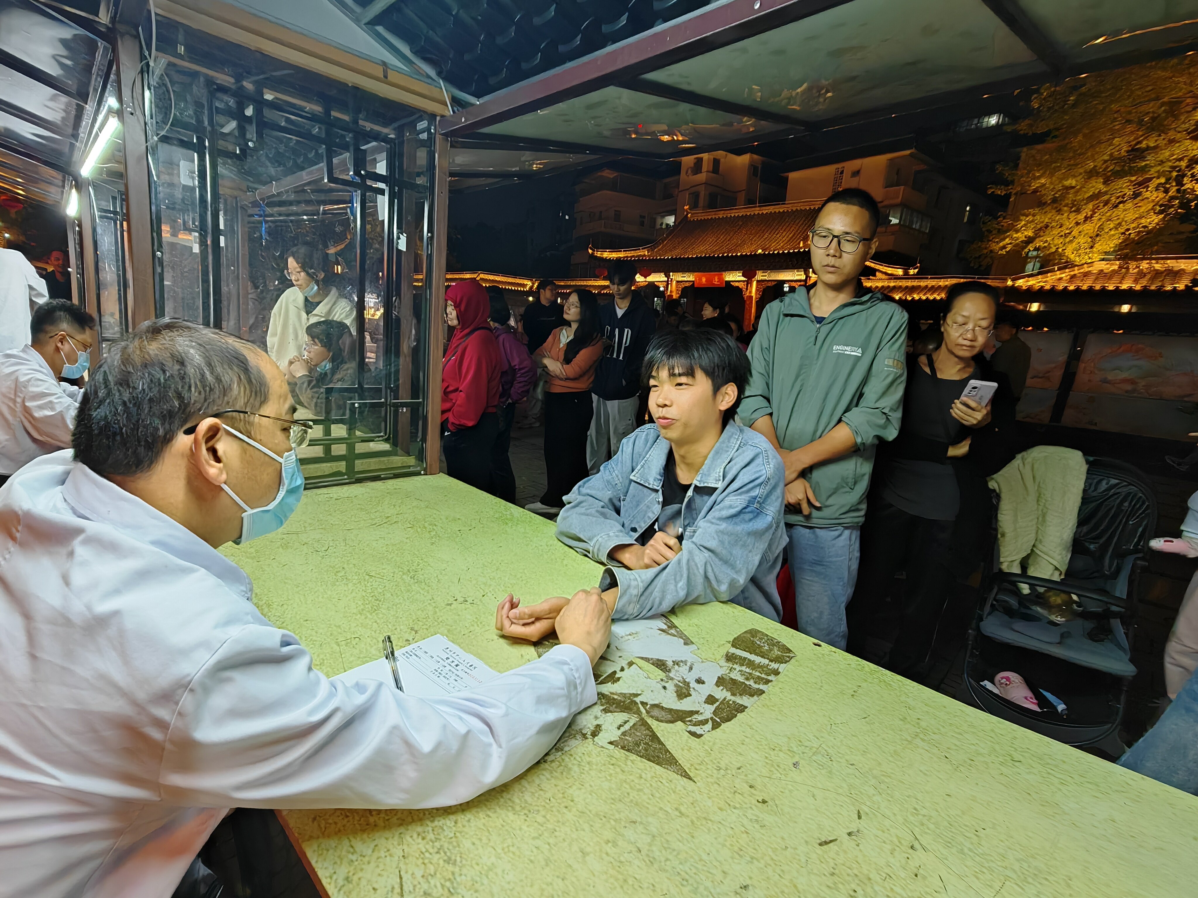 當(dāng)日下午5時(shí)30分,市中心人民醫(yī)院專家醫(yī)生們化身“夜市攤主”,現(xiàn)場坐診,為前來咨詢的群眾義務(wù)診療,并提供個性化的健康建議,沒多久攤位前就排起了長隊(duì)。