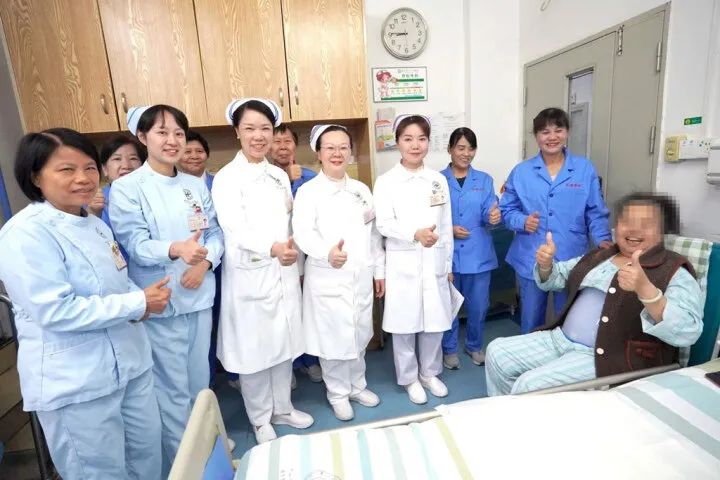 患者給醫(yī)護人員和護理員點贊。圖片由惠州市中心人民醫(yī)院提供