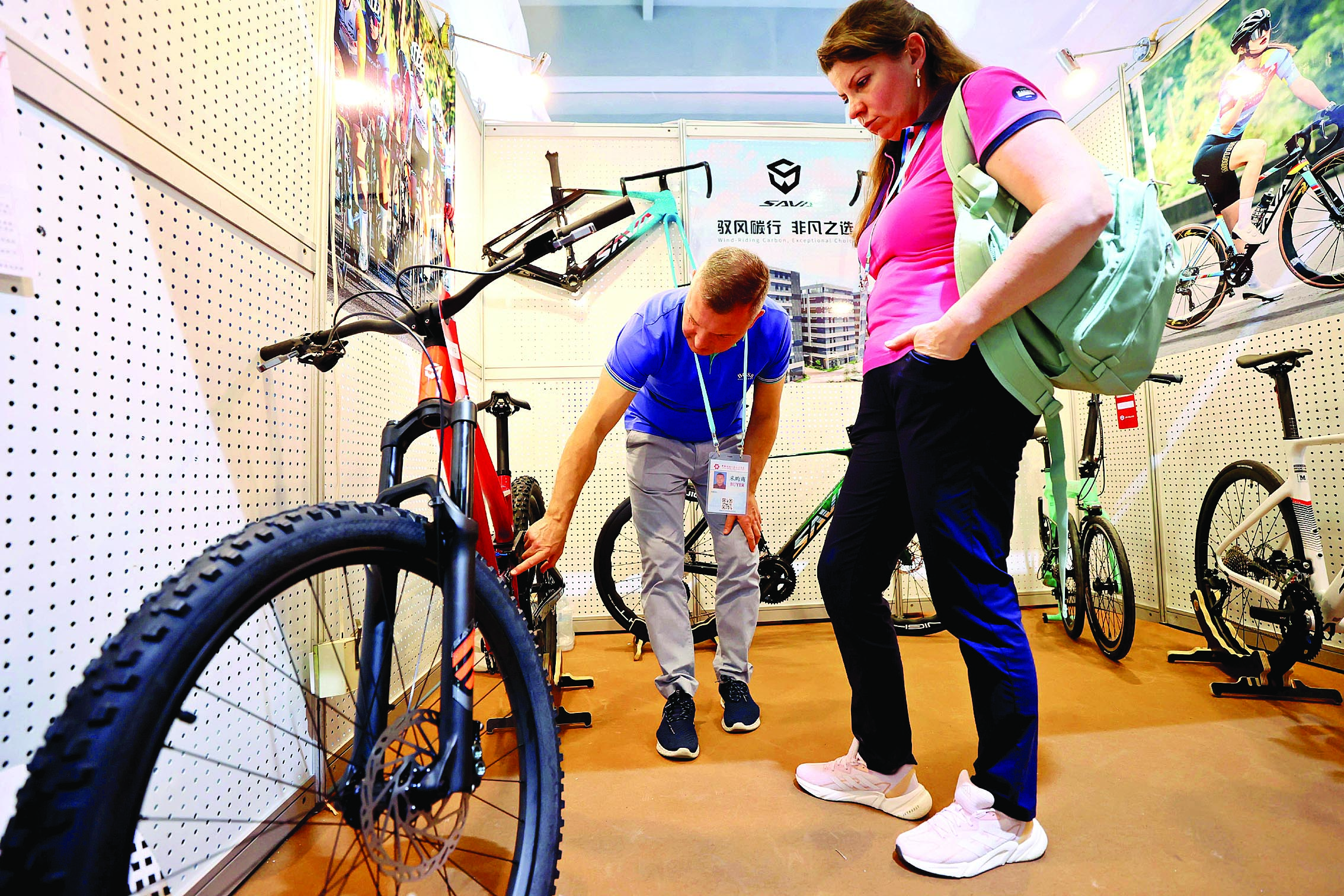 采購商在觀摩薩瓦自行車展出的自行車。