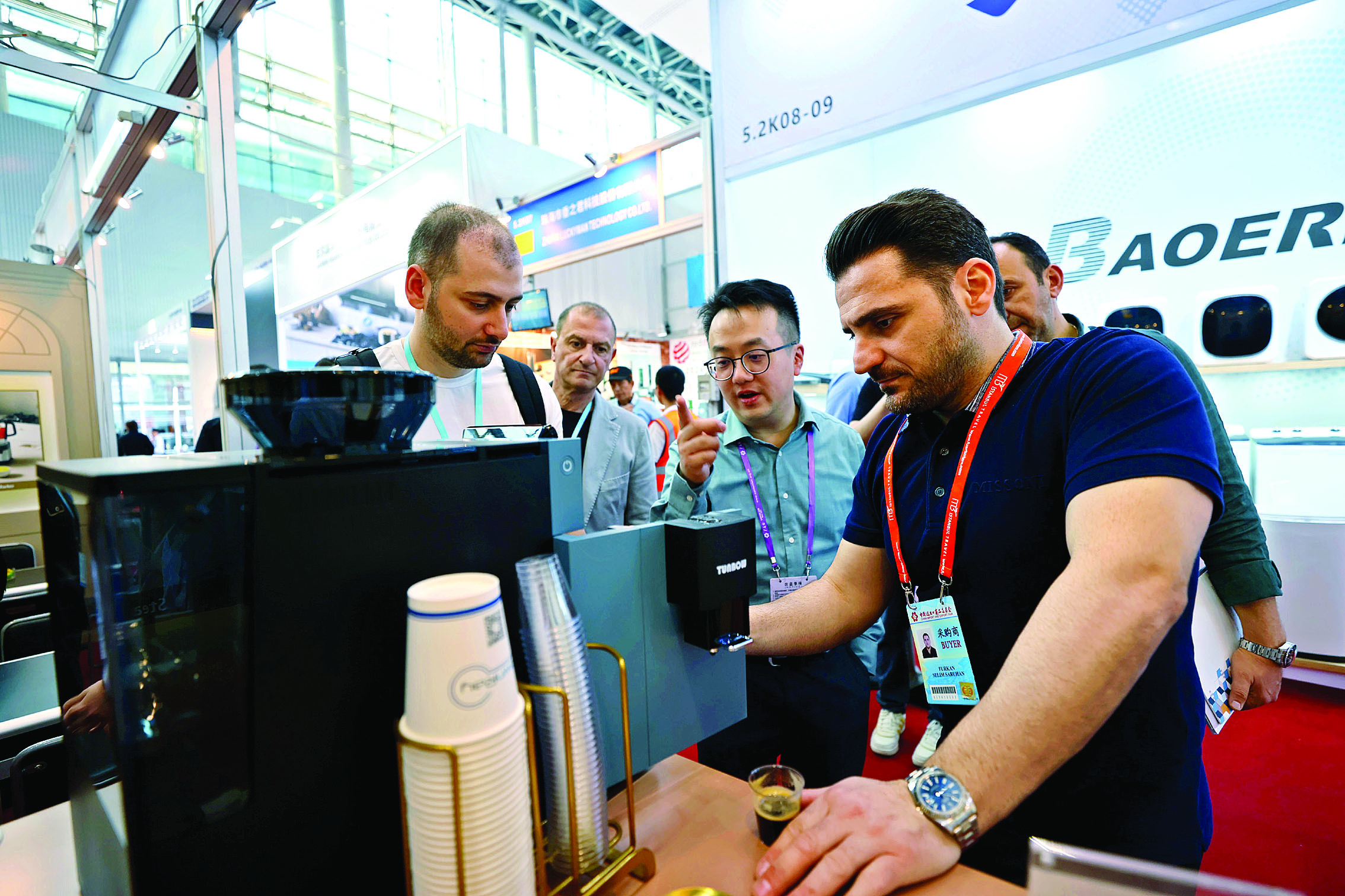 登輝電器展出的咖啡機吸引不少客商駐足。