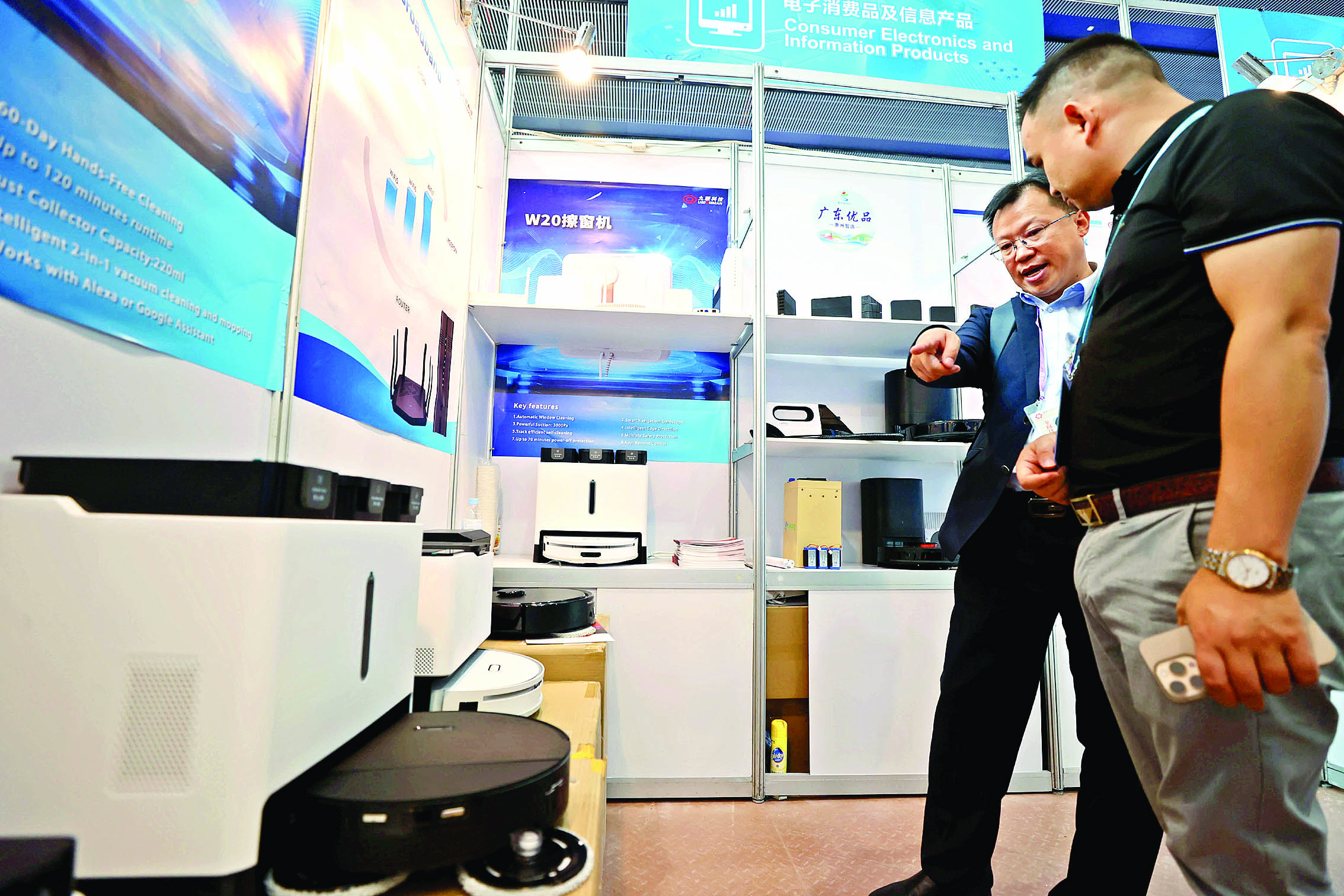 展會現(xiàn)場,惠州企業(yè)展位前人頭攢動。登輝電器的全自動咖啡機多元素實現(xiàn)業(yè)內(nèi)首創(chuàng),吸引了大量客商駐足咨詢。威林科技首創(chuàng)的硅膠暖菜墊今年銷量全球占比一半以上,現(xiàn)場展出的7大系列70多款產(chǎn)品更是引來廣大客商連連點贊,訂單紛至沓來。九聯(lián)科技的智能家居產(chǎn)品備受關注,掃地機器人等新品為家居生活帶來更多便利,也顯示出企業(yè)在新賽道上的潛力。