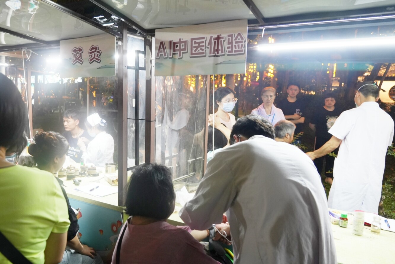 “健康夜市”不僅有多樣中醫(yī)傳統(tǒng)項目,還有人工智能技術(shù)的加持,現(xiàn)場的市中醫(yī)醫(yī)院AI中醫(yī)體驗攤位吸引了眾多市民“嘗鮮”。
