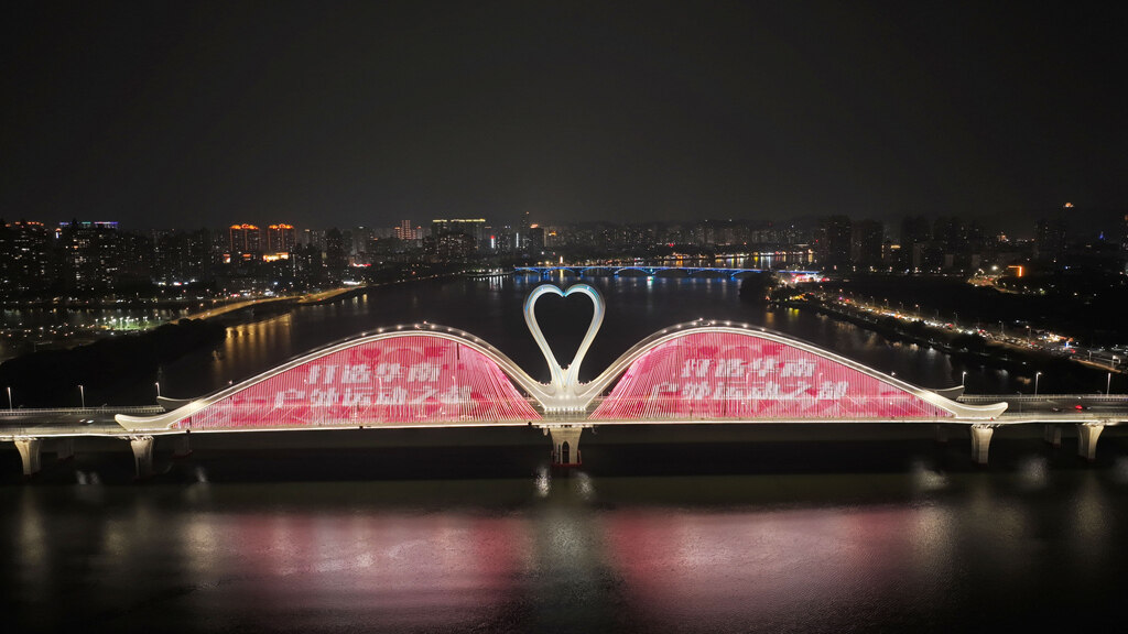 鵝城大橋燈光秀為十五運(yùn)會(huì)打call;葜萑請(bào)記者張藝明 攝