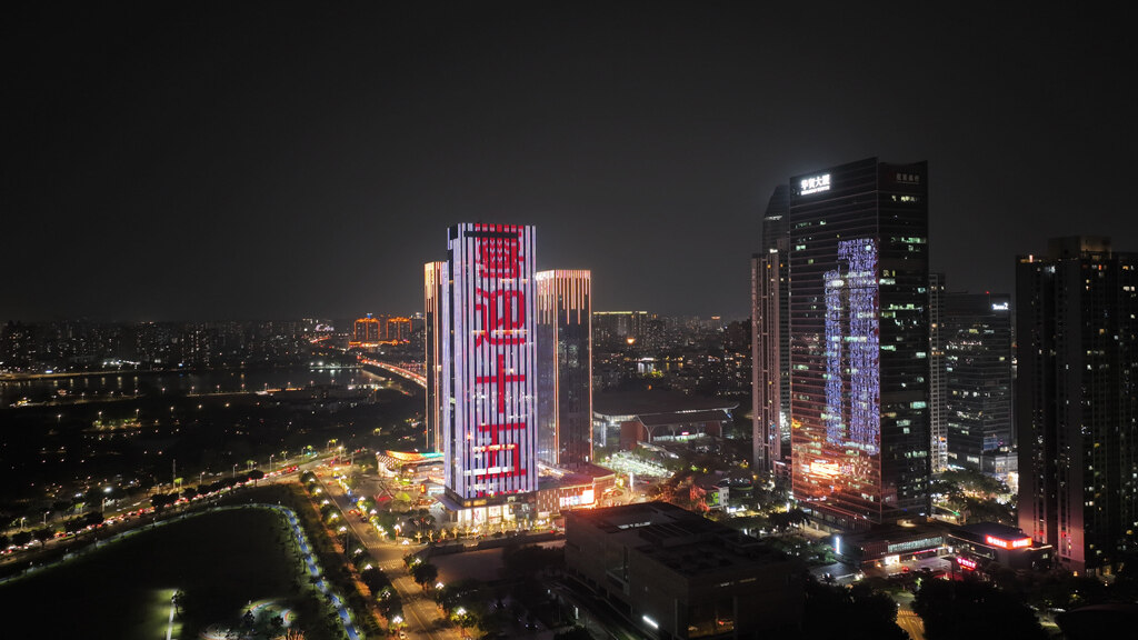 江北麗日廣場亮燈為十五運(yùn)會(huì)打call;葜萑請(bào)記者張藝明 攝