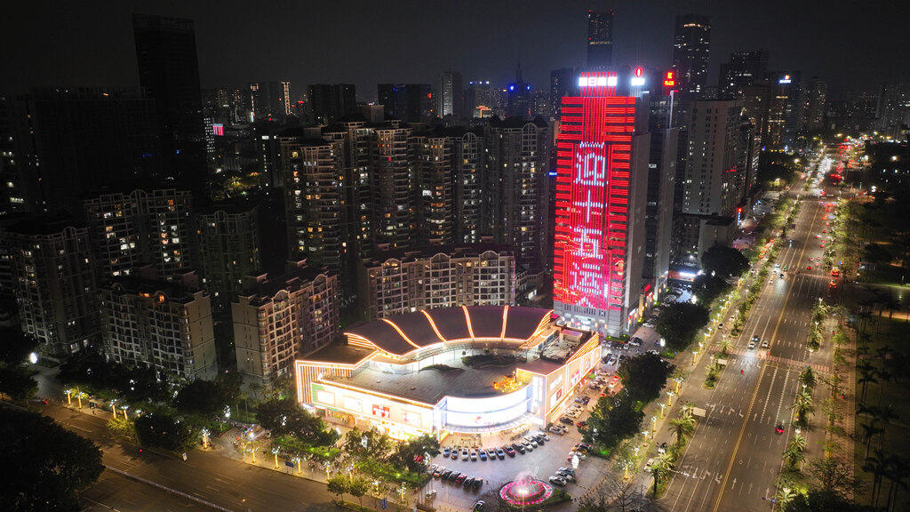江北中海廣場亮燈為十五運(yùn)會(huì)打call;葜萑請(bào)記者張藝明 攝