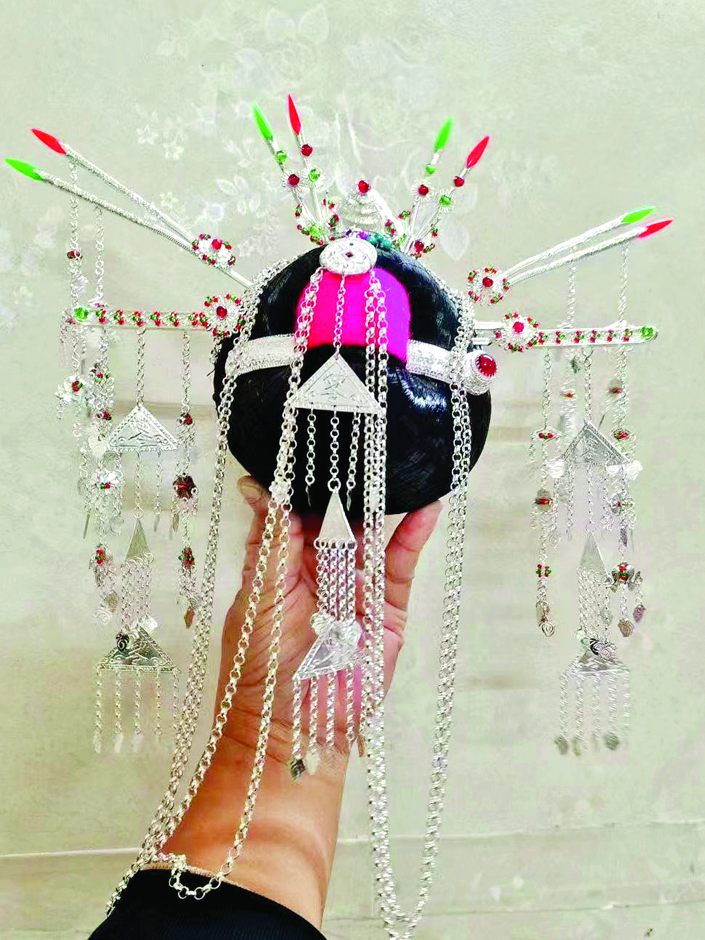 工序在胡加明的口中說出,聽上去好像很簡單,但其實每一步驟都離不開耐心細致。精美的制作,讓胡加明的銀飾廣受歡迎。胡加明說:“收到最多訂單的時候,需要同時制作5~6套發(fā)簪,一套銀飾發(fā)簪制作下來需要需耗時半月以上!