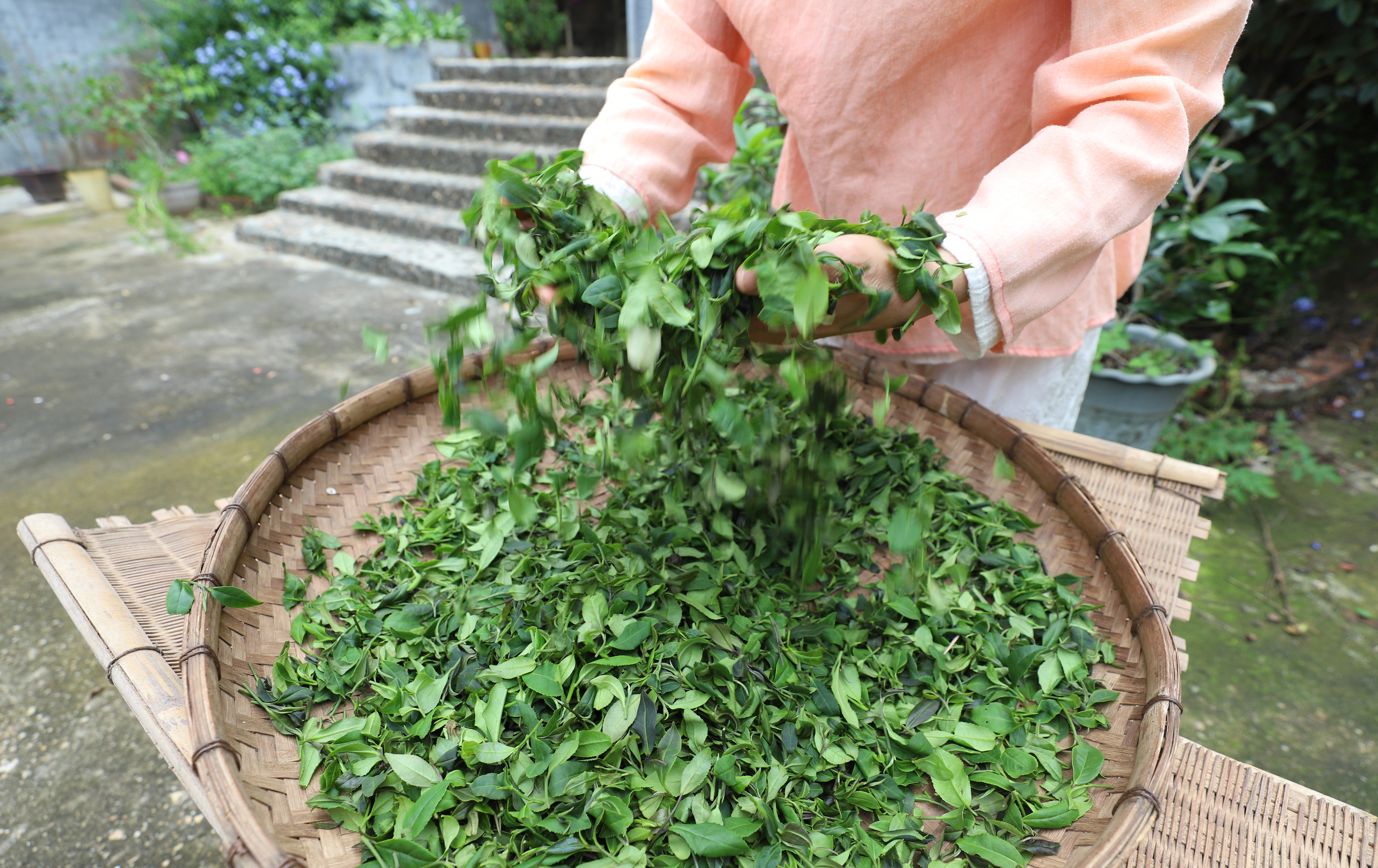 經(jīng)過多年的磨煉,梁結(jié)蓮已深諳手工制茶之道。晾青、殺青、揉捻、再殺青……每個步驟她都熟記于心。她向記者粗略算了一下,手工制茶的工藝不少于13道,“往細里說會更多一些!痹谶@些環(huán)節(jié)中,殺青看似簡單,卻很考驗技術(shù)和火候的拿捏。她說,殺青需要分兩次進行,第一次殺青時,要把晾好的茶青倒入溫度高達300℃的炒茶鍋中,不斷翻炒,確保每片茶葉充分烘烤。“起鍋后,要把它們迅速攤勻,不能堆積,不然茶就不香了。”