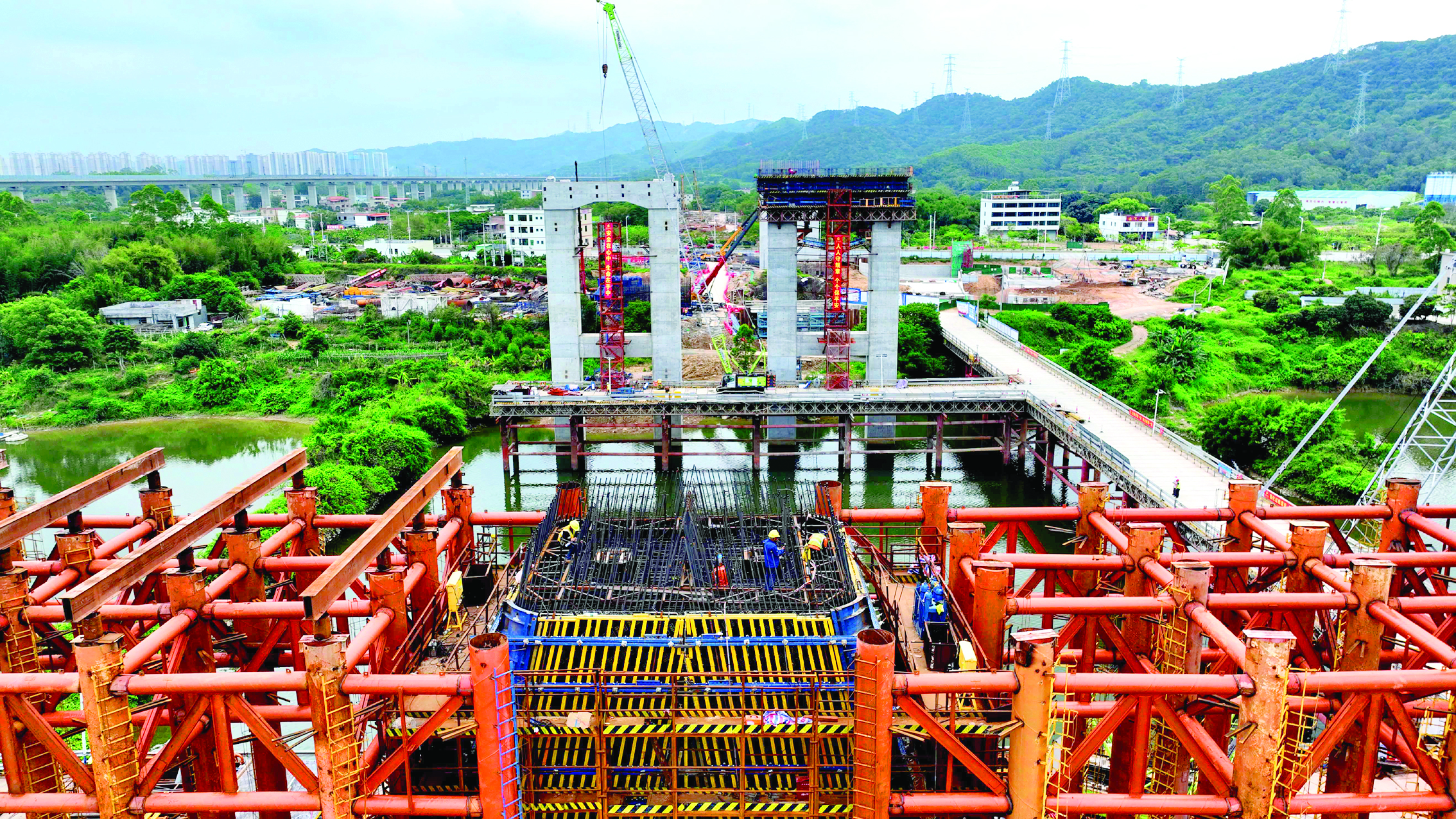 數(shù)臺履帶吊、塔吊等大型機(jī)械設(shè)備將各種建筑材料運送到施工平臺上,鋼筋工、架子工等工種正在加緊施工作業(yè)……5月5日,記者走進(jìn)惠肇高速惠州惠城至廣州增城段(惠增高速)東江特大橋、羅陽互通施工現(xiàn)場發(fā)現(xiàn),今年“五一”假期,惠增高速項目建設(shè)繼續(xù)穩(wěn)步推進(jìn)中,東江特大橋已進(jìn)入主橋墩下橫梁施工階段,為2027年全線建成通車打下了堅實基礎(chǔ)。