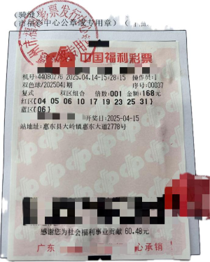 2025年4月15日,中國福利彩票雙色球第2025041期開獎,這期全國共中出8注一等獎,其中1注幸運(yùn)落在惠州,中獎?wù)军c(diǎn)是惠東縣大嶺街道惠東大道44080276銷售站點(diǎn),中獎獎金703萬元。
