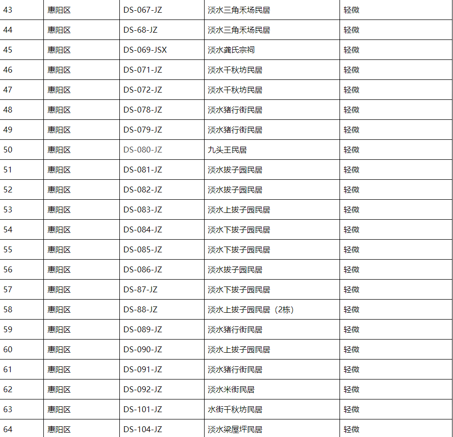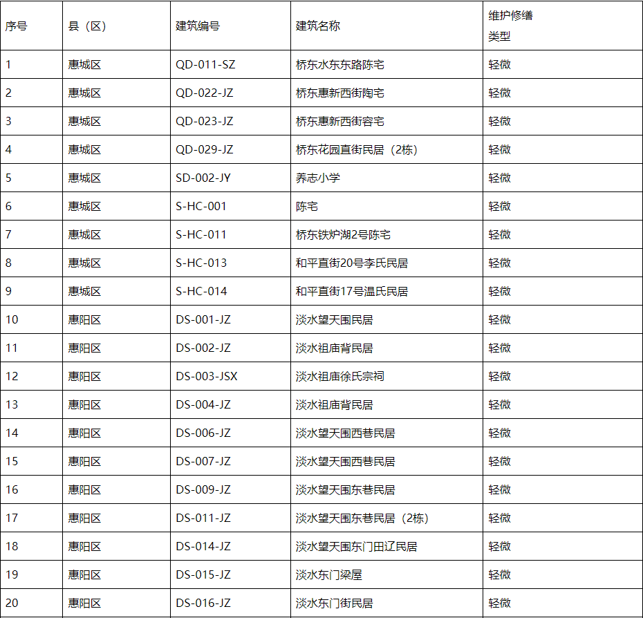 為進(jìn)一步加強(qiáng)對(duì)全市歷史建筑的保護(hù)管理,日前,市住房和城鄉(xiāng)建設(shè)局發(fā)布《關(guān)于惠州市2025年度歷史建筑維護(hù)修繕(輕微修繕)補(bǔ)助計(jì)劃的公示》,擬將84座歷史建筑列入維護(hù)修繕補(bǔ)助名單。