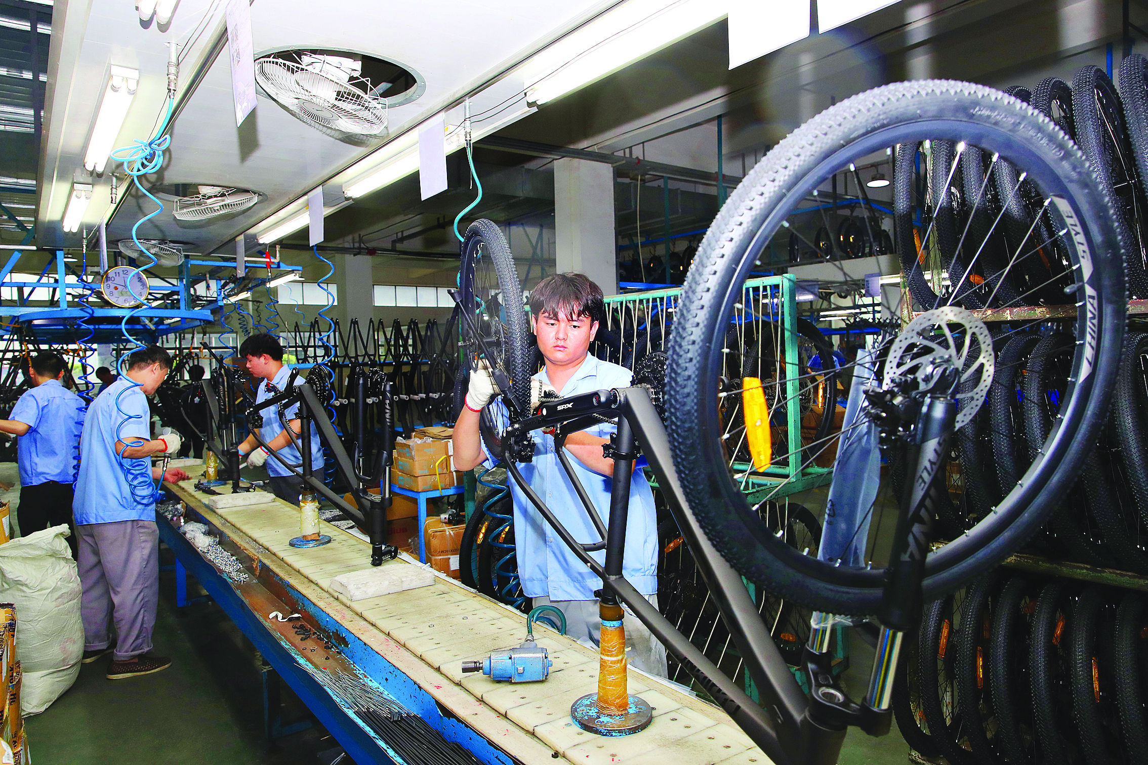 惠州市喜德盛自行車(chē)有限公司生產(chǎn)車(chē)間;葜萑?qǐng)?bào)記者鐘暢新 攝