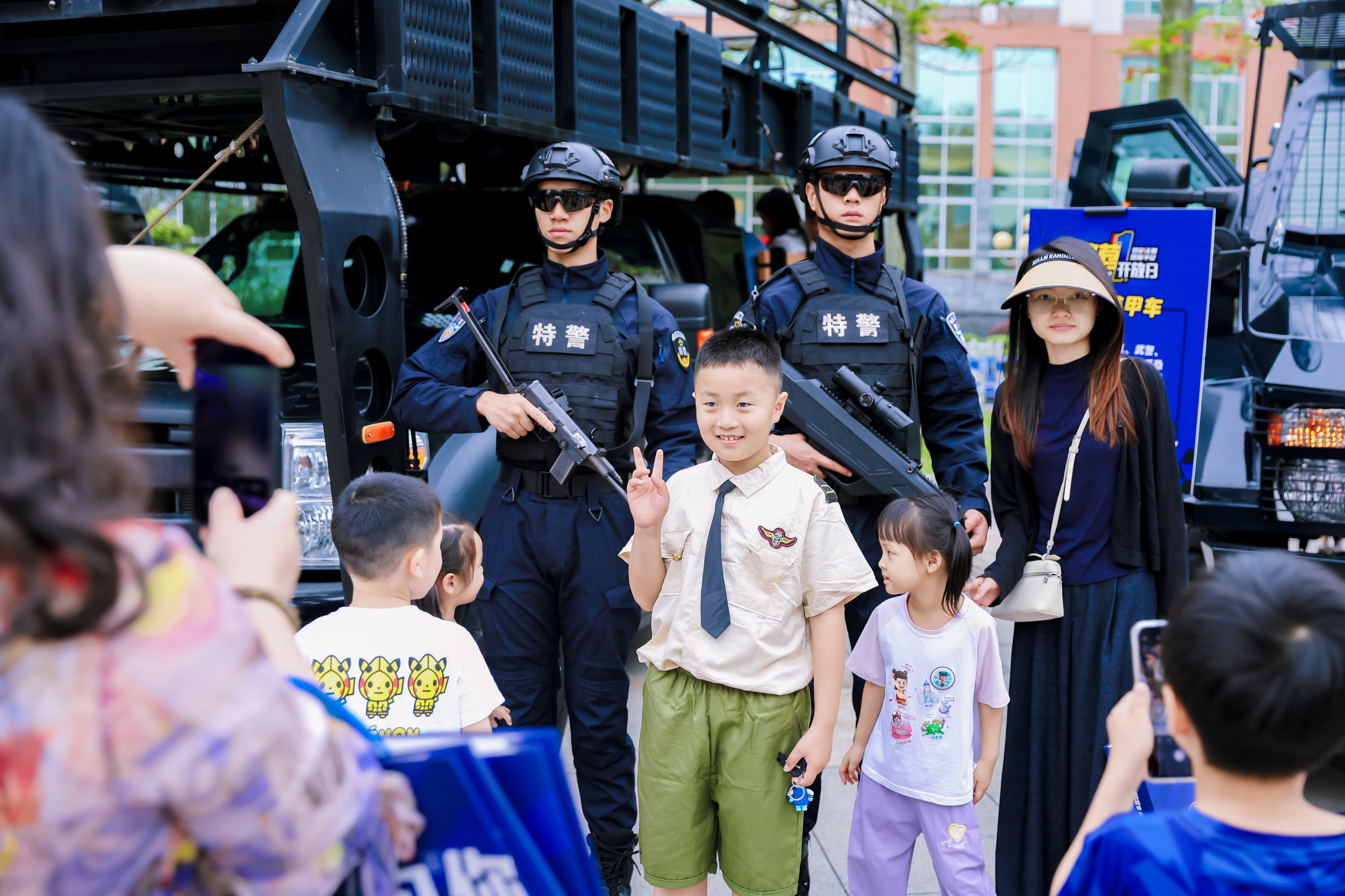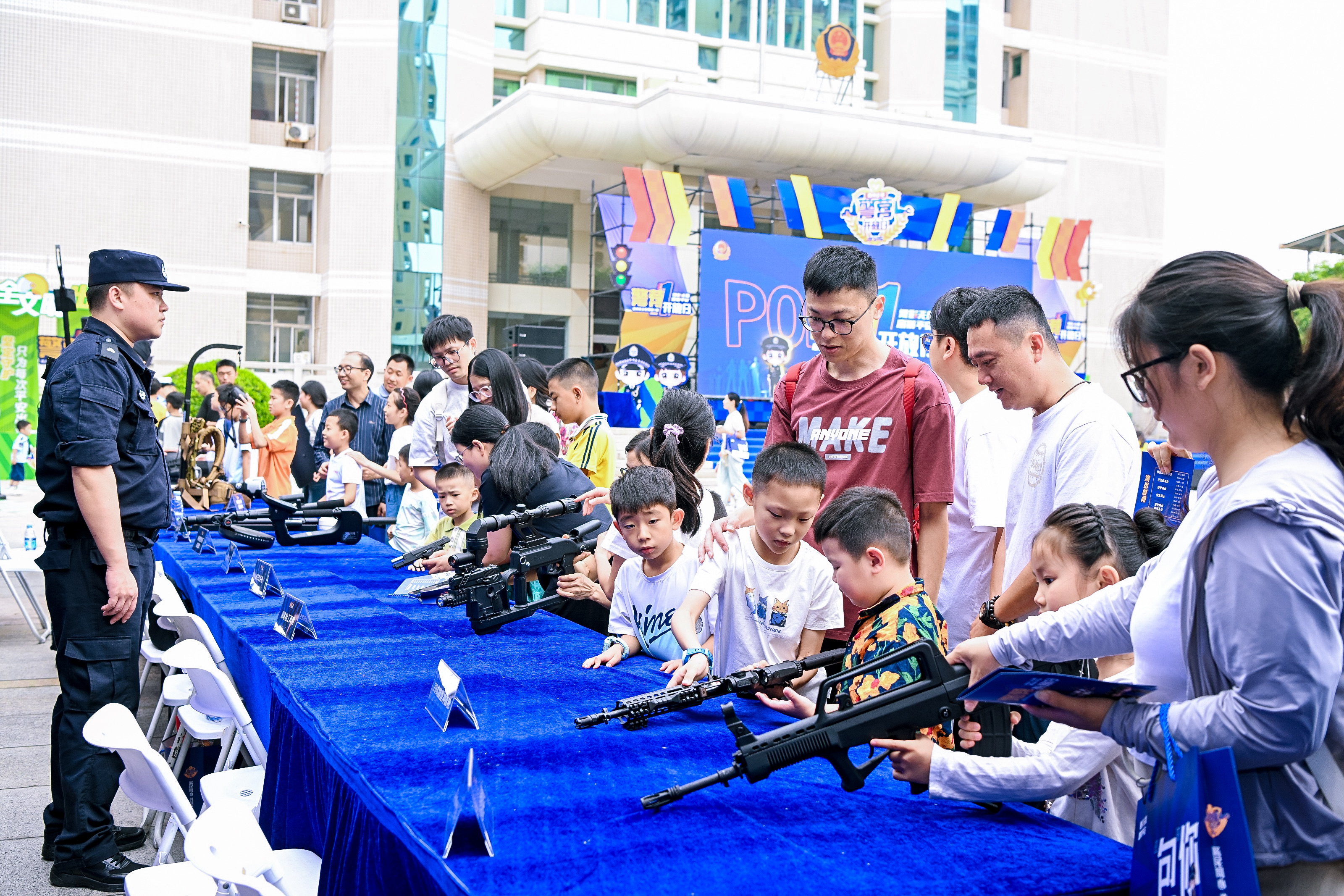 “特警硬實(shí)力”互動(dòng)區(qū)的特種槍械展示,吸引眾多小朋友前來體驗(yàn)。