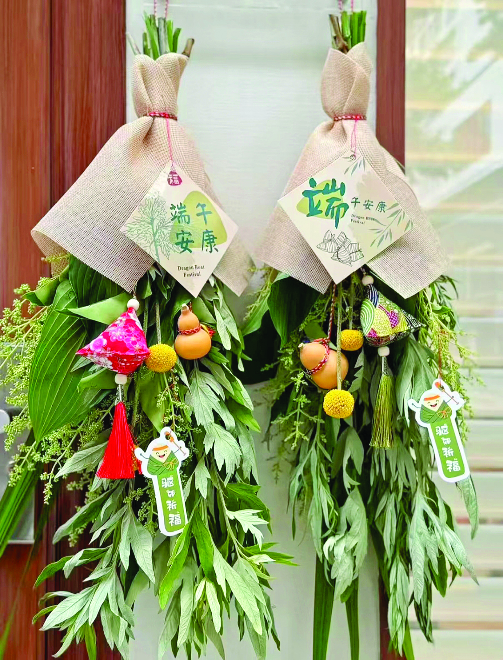 端午節(jié)前夕,仲愷高新區(qū)惠環(huán)街道一家花藝工作室里,負責人樂曲正忙著打包艾草門掛。這些產品價格從38元到百元以上,搭配中國結、香囊、手寫吊牌等元素,成為今年端午節(jié)消費市場的“新寵”。