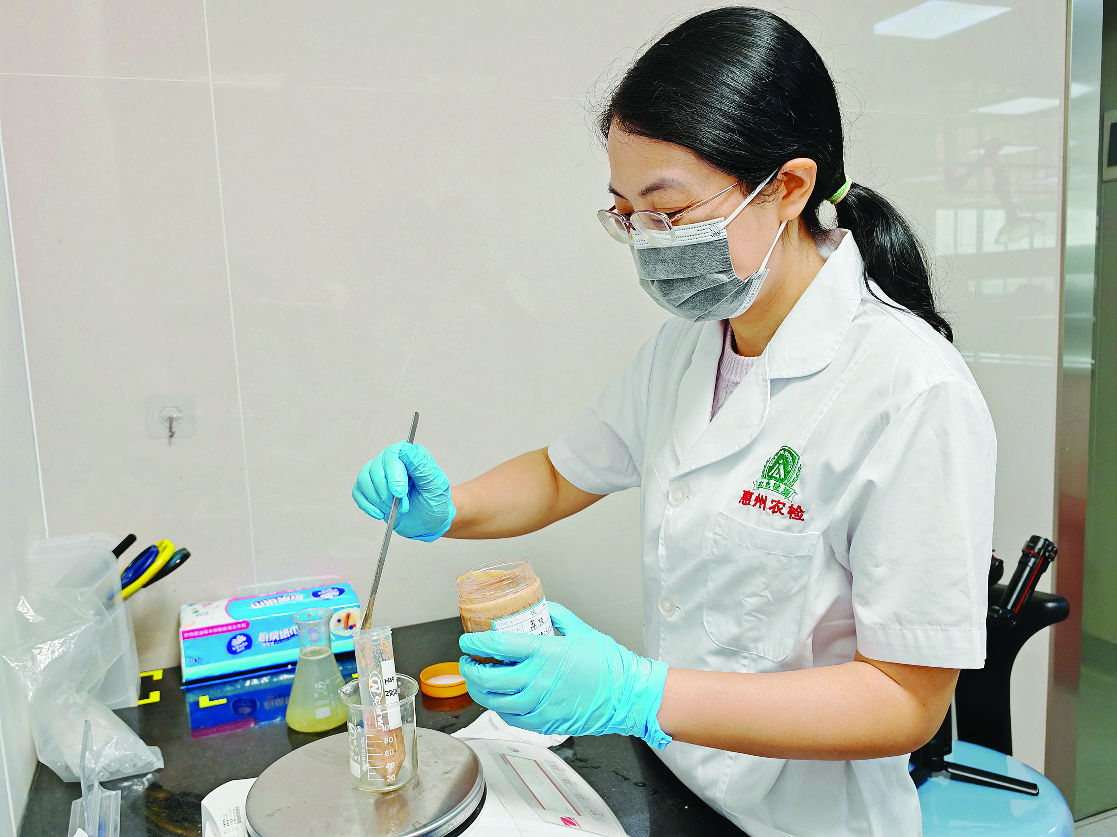 樣品采集、制樣、前處理、上機操作、結果處理……走進惠州市農產品質量安全監(jiān)督檢測中心(以下簡稱“市農檢中心”),各種精密儀器和試劑器皿間,農產品檢測火熱開展,吳燕梅穿梭于數(shù)據(jù)“海洋”,忙著做好檢測、協(xié)調工作!白鳛檗r產品質量安全的重要‘守門員’,我們的每一次嚴格把關,都是為了讓群眾吃上安全放心農產品!眳茄嗝氛f。