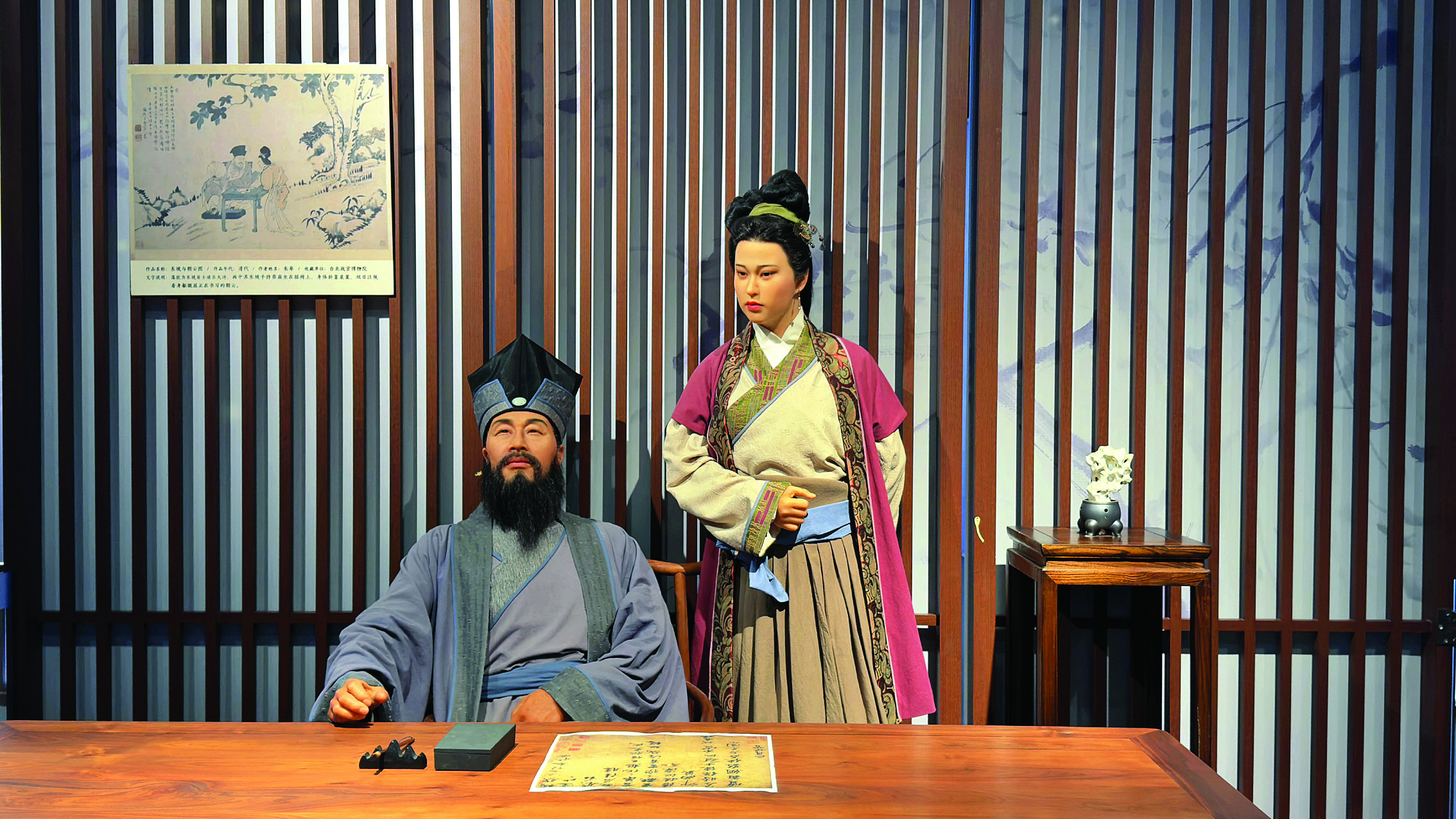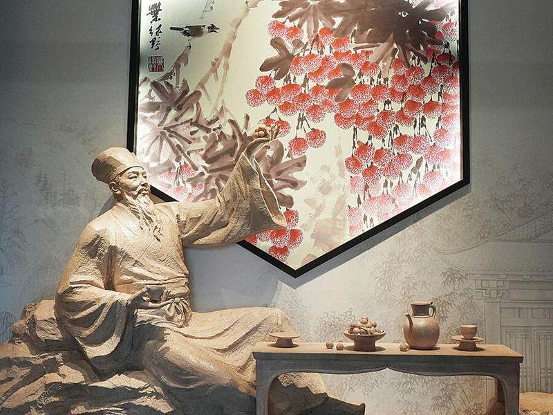 東坡紀(jì)念館西湖分館東坡食荔枝雕塑。