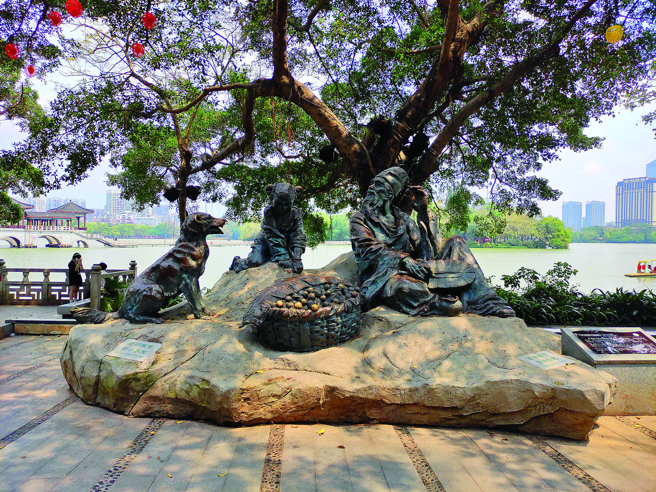 惠州西湖蘇堤東坡食荔枝雕塑。
