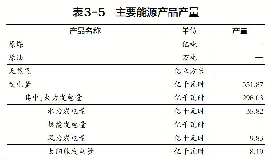 2023年,主要能源產(chǎn)品產(chǎn)量詳見表3-5。
