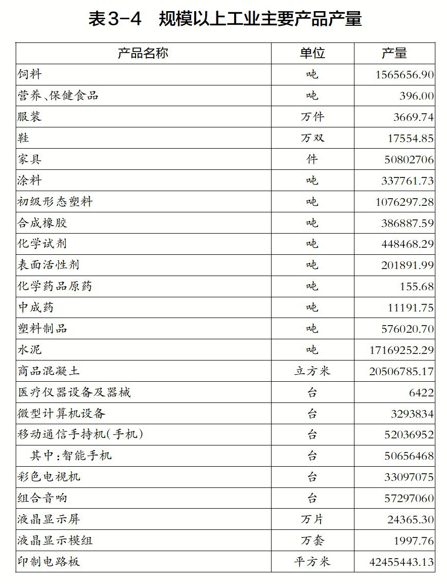 2023年,規(guī)模以上工業(yè)主要產(chǎn)品產(chǎn)量詳見表3-4。