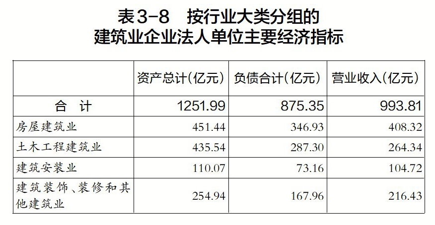2023年末,建筑業(yè)企業(yè)法人單位資產(chǎn)總計(jì)1251.99億元,比2018年末增長135.5%;負(fù)債合計(jì)875.35億元,比2018年末增長149.3%。