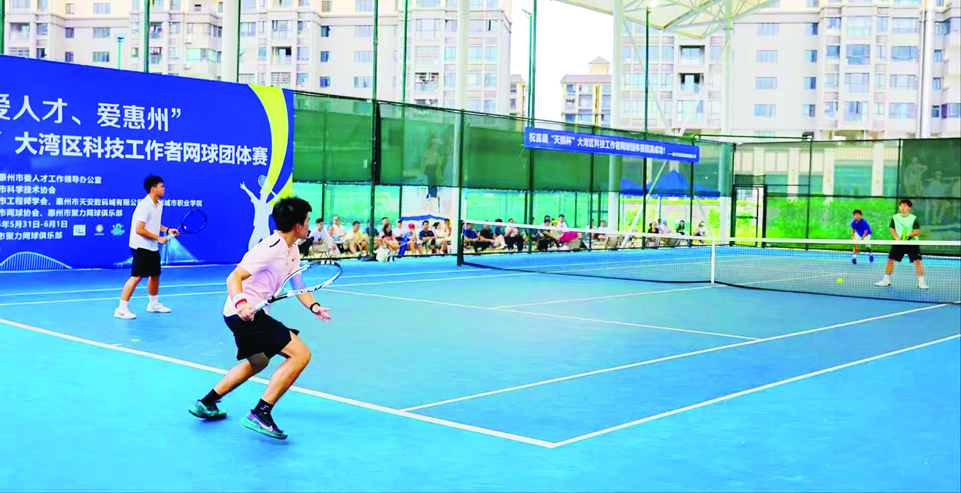 作為惠州主辦的首個(gè)面向大灣區(qū)科技工作者的專(zhuān)業(yè)網(wǎng)球賽事,本屆比賽創(chuàng)新設(shè)置第一男雙、第二男雙和混合雙打三大團(tuán)體項(xiàng)目。賽場(chǎng)上,選手們靈活跑位、默契配合,網(wǎng)前截?fù)、底線(xiàn)抽球等精彩場(chǎng)面不斷上演,場(chǎng)外觀(guān)眾熱情高漲,加油助威聲此起彼伏。