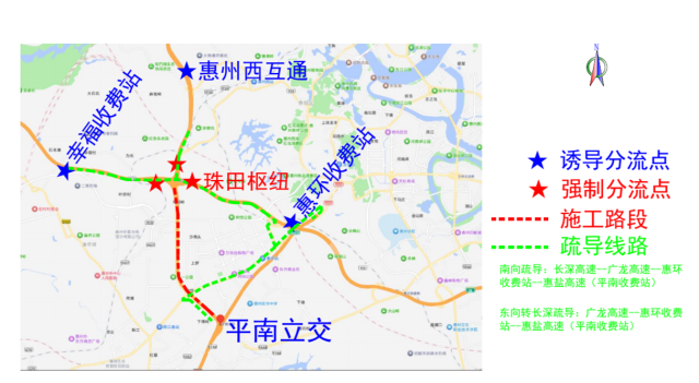 G25長(zhǎng)深高速珠田立交至平南立交段臨時(shí)交通管制示意圖。(來(lái)源惠州交警)