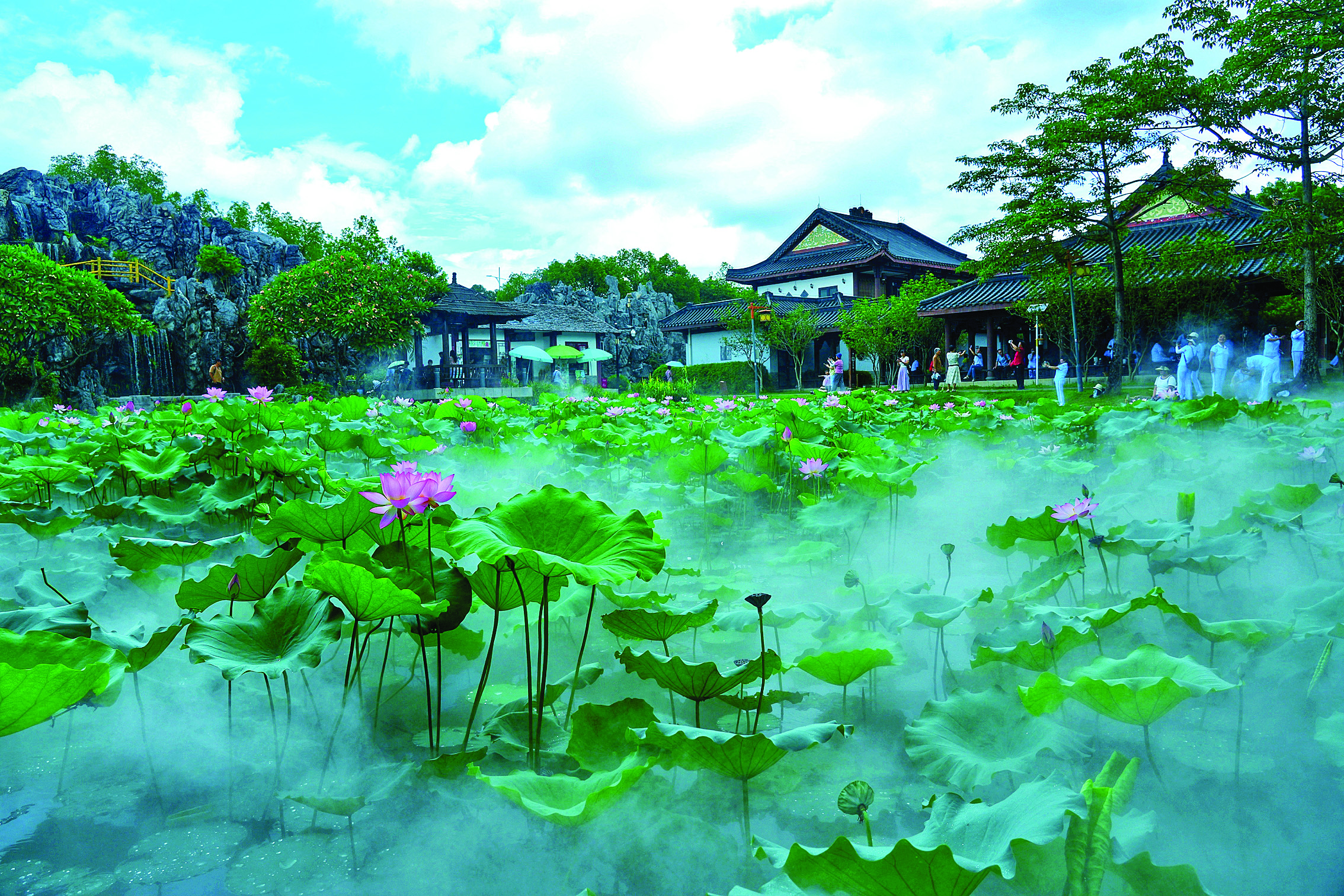 當(dāng)輕紗般的霧靄邂逅滿池荷花,會(huì)碰撞出怎樣的詩(shī)意畫(huà)卷?近日,惠州西湖豐渚園給出了答案——荷花池畔人工霧景初綻芳容,裊裊霧氣升騰彌漫,勾勒出一幅靈動(dòng)的水墨丹青。氤氳霧氣中,荷花若隱若現(xiàn),碧綠荷葉在霧氣的縈繞間仿若浮于云端。清風(fēng)拂過(guò),霧浪翻涌,荷花搖曳生姿,翩翩起舞,引得市民游客駐足沉醉。
