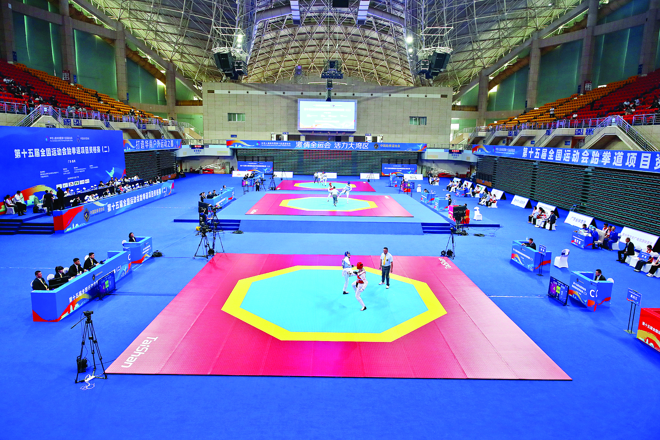 第十五屆全國(guó)運(yùn)動(dòng)會(huì)跆拳道項(xiàng)目資格賽(第二站)在惠州體育館舉行。這是全運(yùn)會(huì)跆拳道項(xiàng)目決賽前最后一場(chǎng)資格賽。賽事采用先進(jìn)的電子護(hù)具計(jì)分系統(tǒng),并嚴(yán)格執(zhí)行錄像審議制度,最大程度保障競(jìng)賽過(guò)程的公平、公正、公開(kāi)。經(jīng)過(guò)高水平、高強(qiáng)度的比賽,各項(xiàng)目級(jí)別競(jìng)爭(zhēng)激烈,精彩紛呈,最終確定剩余的16個(gè)全運(yùn)會(huì)決賽席位。