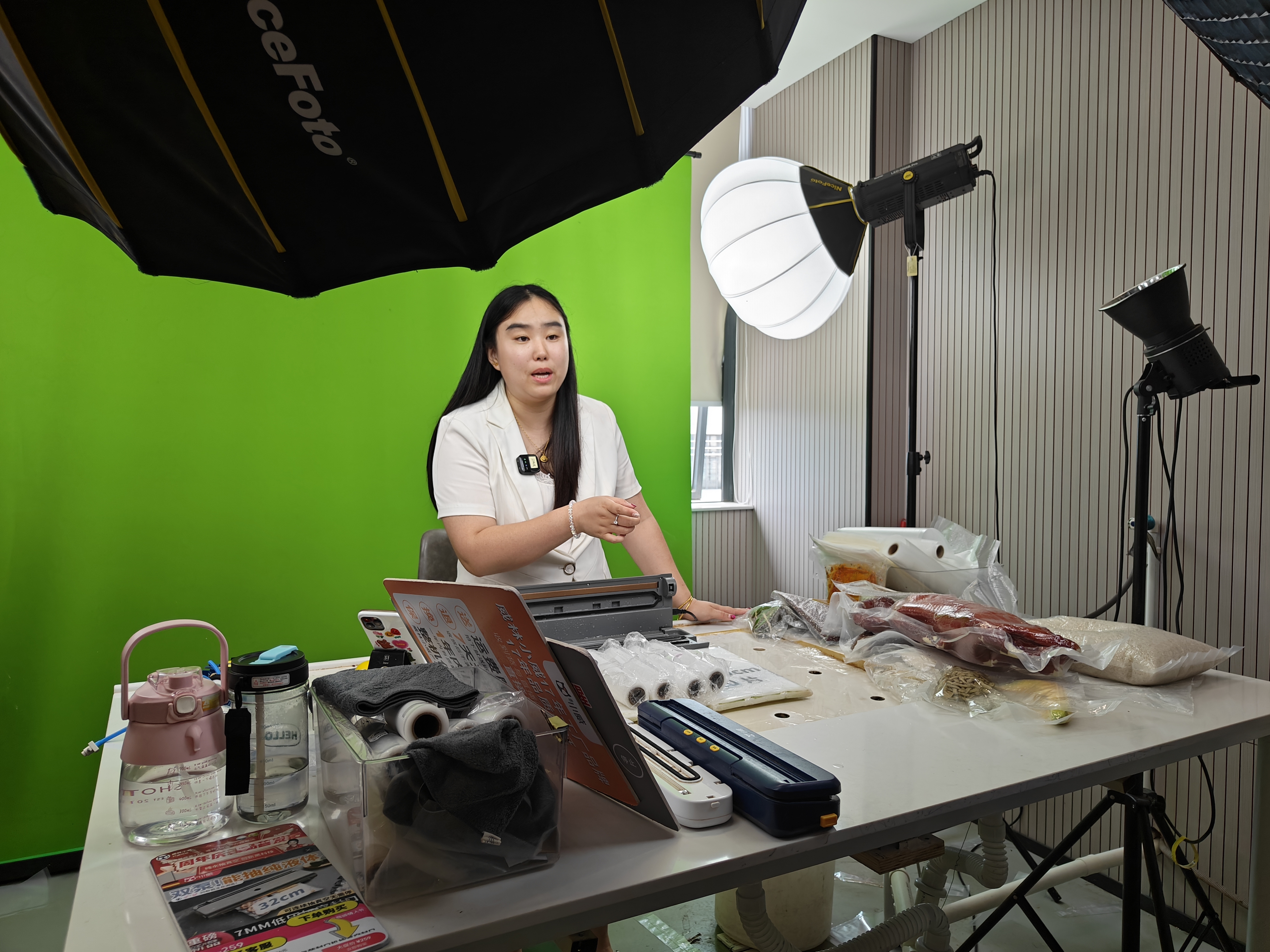 企業(yè)銷售人員在直播間推薦產(chǎn)品。