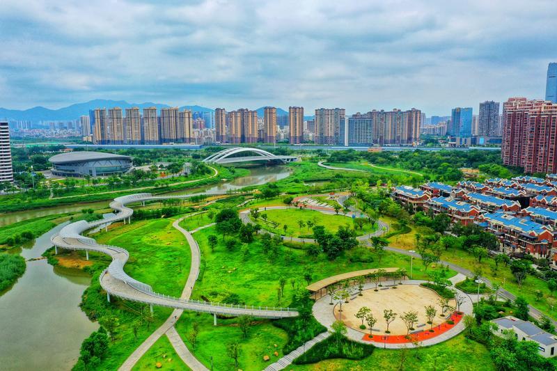 惠陽淡水半島濱水公園依傍惠陽淡水河干流,西起高爾夫橋,東至深汕高速,綿延2.5公里水岸線。碧水飛虹(水舞之橋)、空中走廊、蘆花飛雪三座景觀橋飛架河面,成為亮眼景點。園內無障礙濱河綠道與步道交織,串聯(lián)十二處景觀節(jié)點,依托天然水岸,聯(lián)動周邊設施,構建生態(tài)緩坡綠地;更設有廣場、親水平臺等休憩區(qū)域,搭配人文小品與停車場,打造集休閑運動、游賞觀景于一體的城市濱水空間。