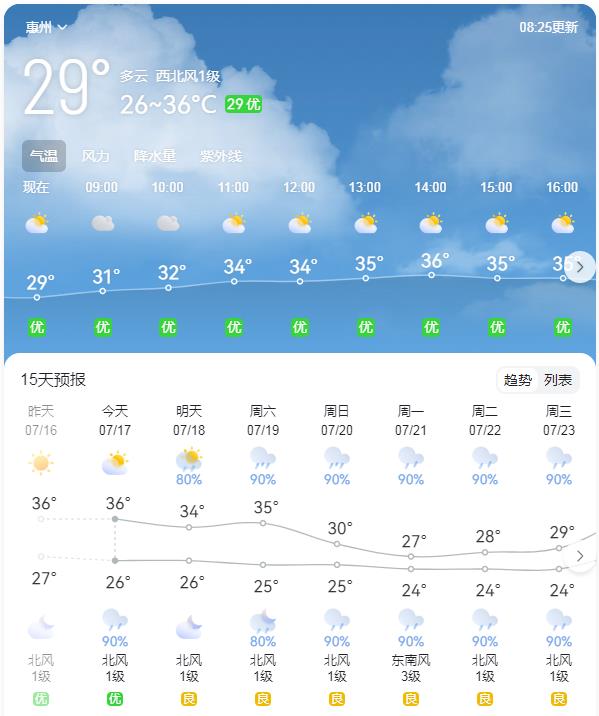 惠州日報(bào)訊 (記者劉建威)7月15日上午,全市各縣(區(qū))高溫黃色預(yù)警信號相繼生效。
