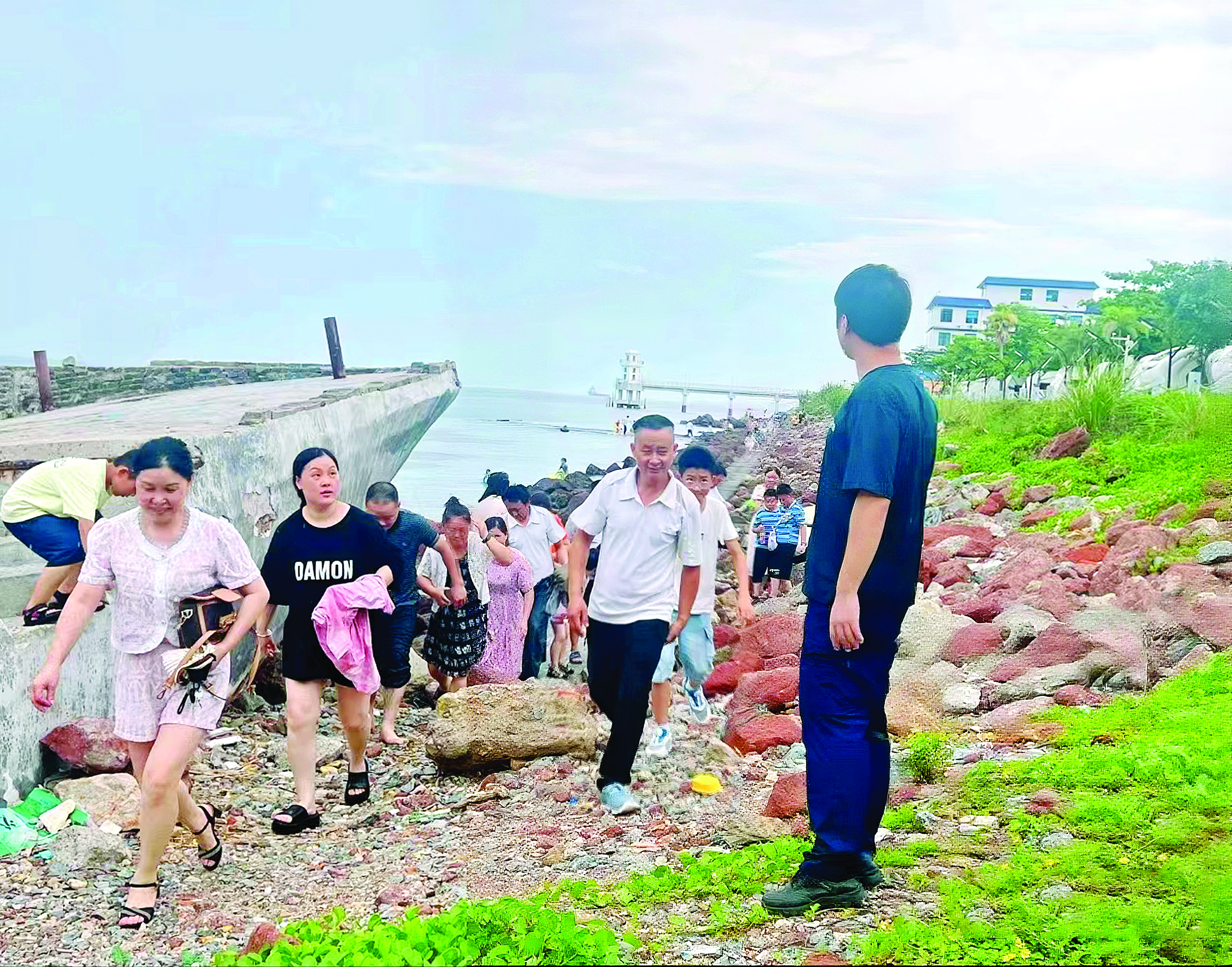 7月19日,大亞灣霞涌街道工作人員對水庫河道、海邊灘涂沙灘等進行排查和人員勸離,全力消除安全隱患。惠州日報記者匡湘鄂 通訊員丁玉林 攝