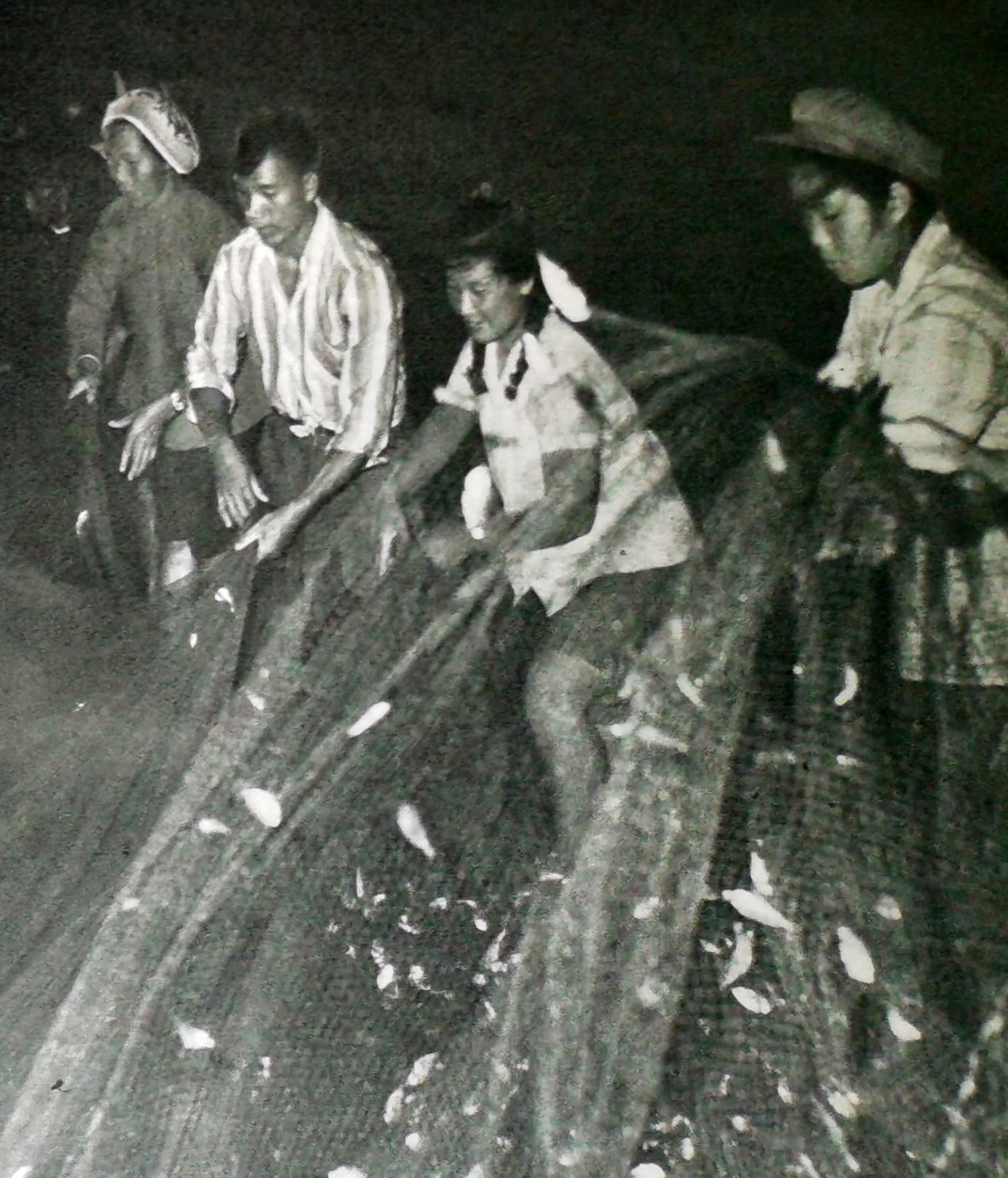 1979年《廣東畫(huà)報(bào)》第7期一幅反映大亞灣洲冷島(今東升島)漁民夜間捕魚(yú)的照片。侯縣軍 翻拍