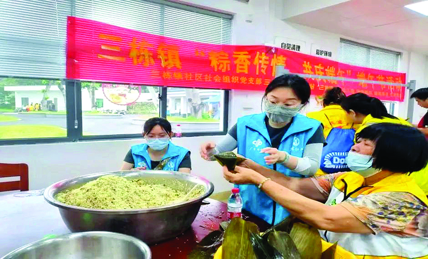 今年端午節(jié),三棟鎮(zhèn)“雙百工程”社工站志愿者與“雙百”社工一起包粽子送給轄區(qū)低保家庭。