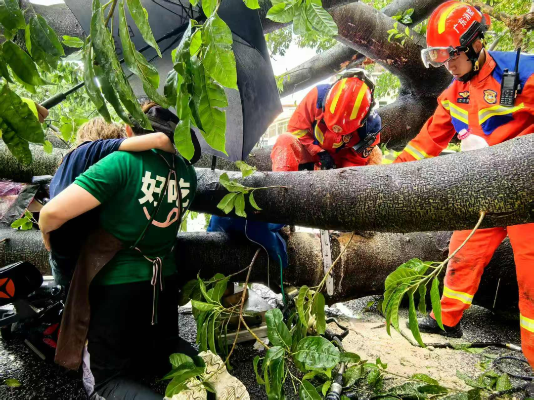 “快!分兩組行動!”,F(xiàn)場一組消防員操作機動鏈鋸,對樹干進行精準切割、分段清理,為營救開辟安全空間;另一組則配合趕到的120醫(yī)護人員,對被困女子進行傷情初步評估和防護,確保救援過程中不造成二次傷害。