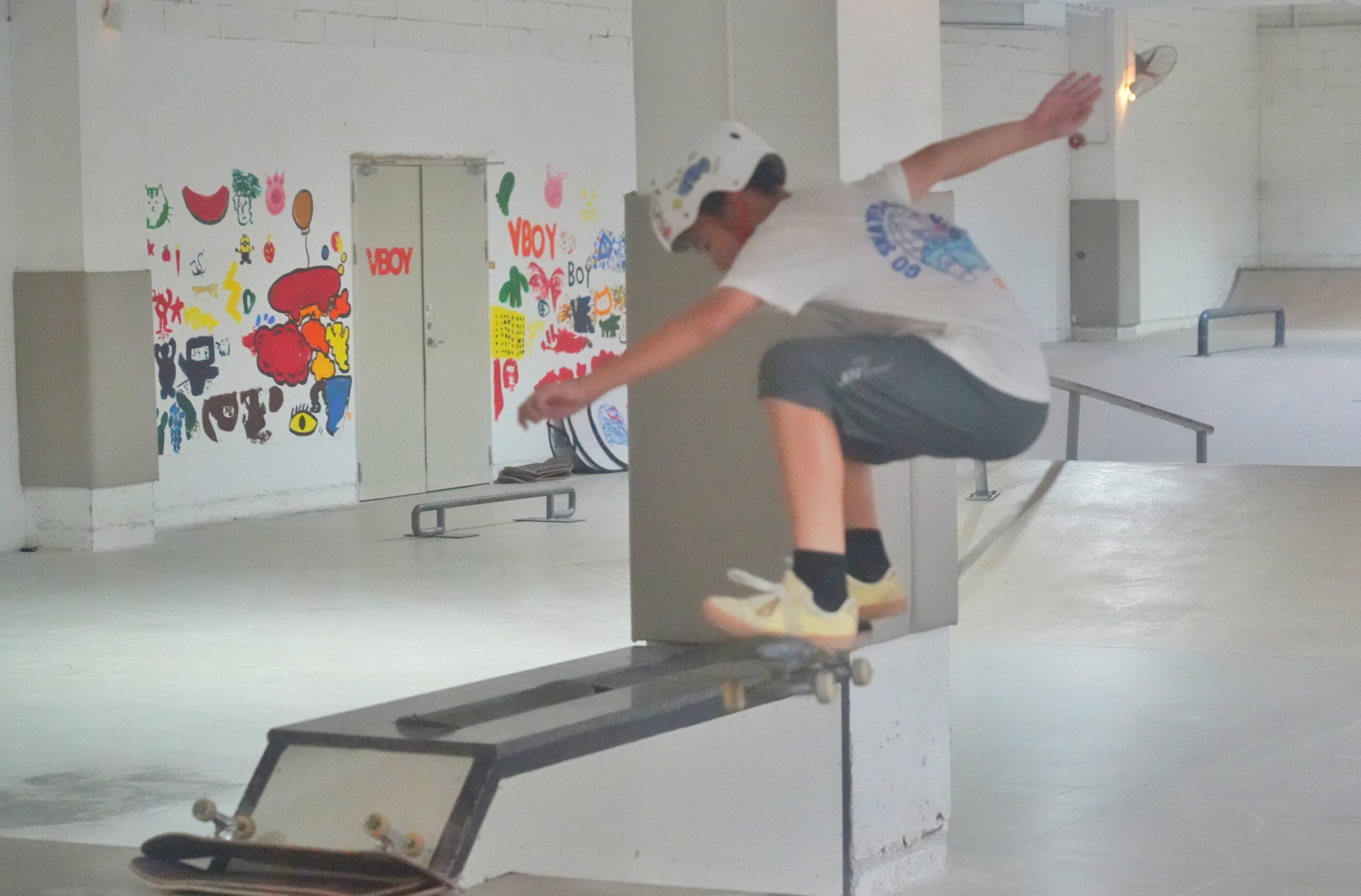 8月2日,在市區(qū)惠州江北的一家滑板運(yùn)動(dòng)機(jī)構(gòu),媒體團(tuán)近距離觀摩惠州滑板愛好者的訓(xùn)練現(xiàn)場。