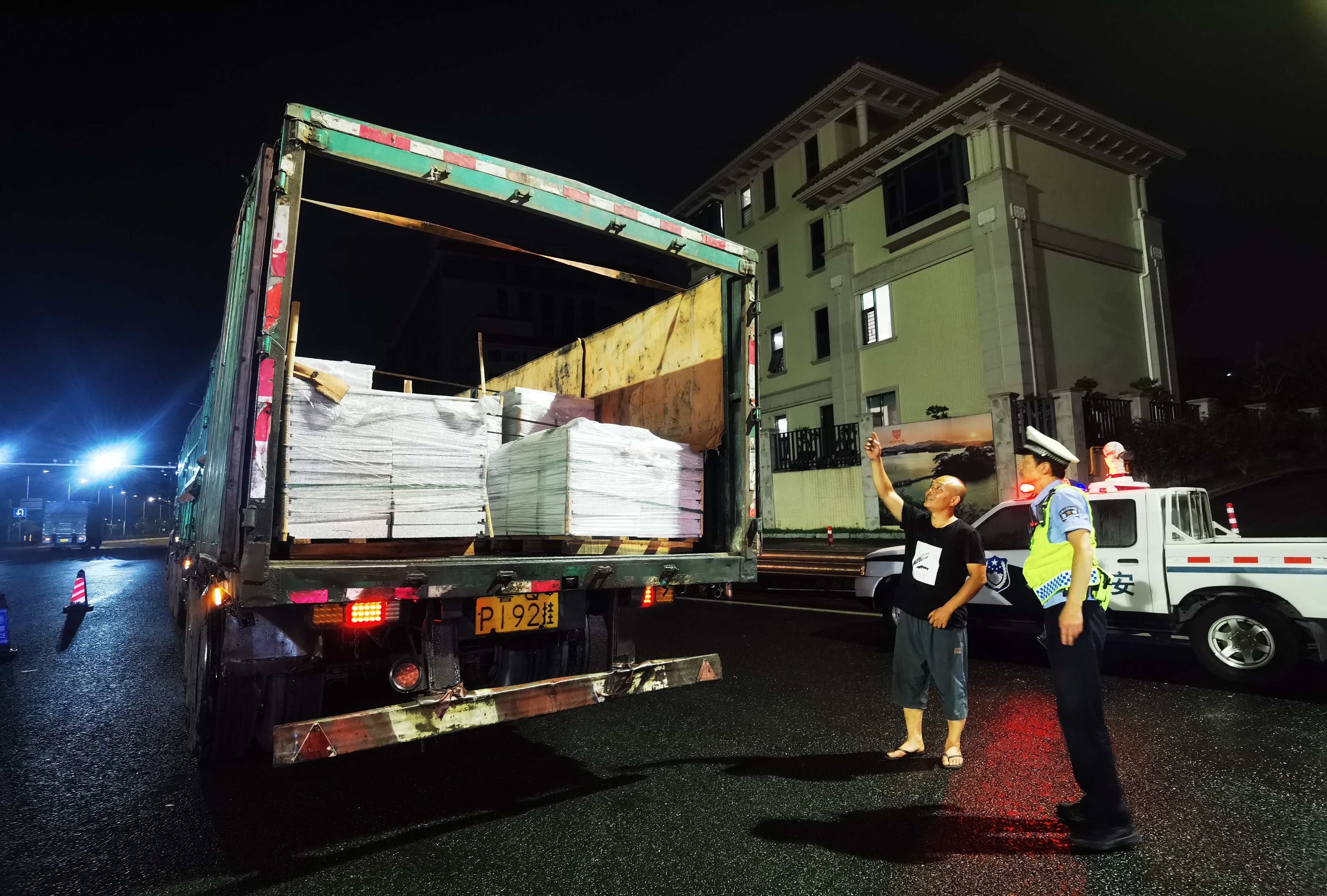 當(dāng)晚10時(shí)許,市公安局交管支隊(duì)高二大隊(duì)在長(zhǎng)深高速惠州西收費(fèi)站出口設(shè)置檢查點(diǎn),對(duì)駛出高速公路的大貨車、小汽車實(shí)行“逢車必查”。不久,一輛滿載石板的大貨車從高速駛下,執(zhí)勤交警將車輛攔停后檢查發(fā)現(xiàn),大貨車后尾箱車門沒有關(guān),一旦遇到突發(fā)情況急剎車,石板容易滑落對(duì)后車造成傷害,且司機(jī)穿著拖鞋開車,也有一定的危險(xiǎn)性。