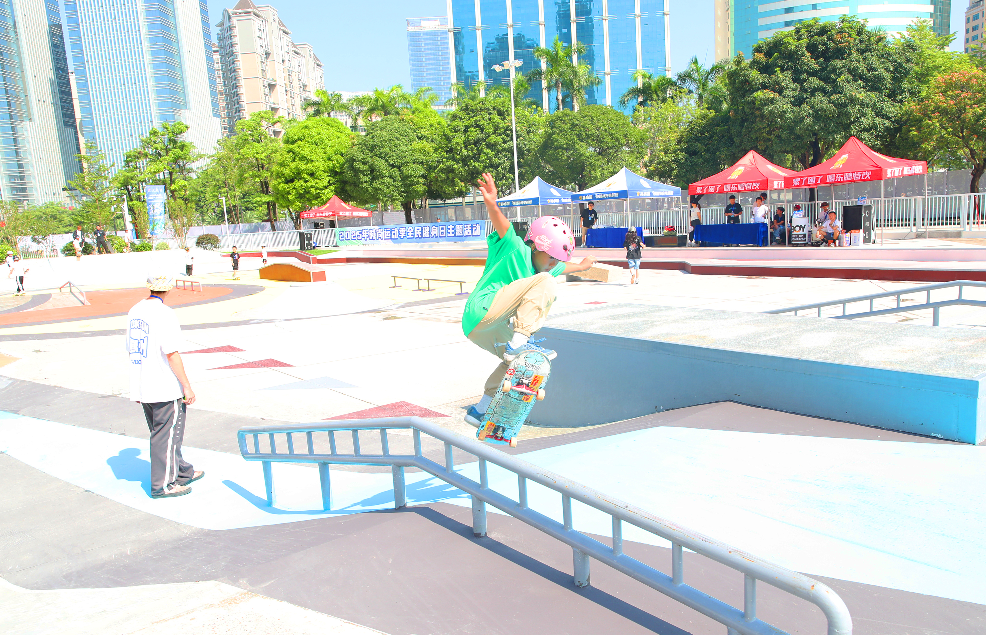 在惠州體育館東一門外的滑板區(qū),新落成的滑板場吸引眾多愛好者,不少青少年在專業(yè)教練指導下初次嘗試滑板,體驗“貼地飛行”的快感。
