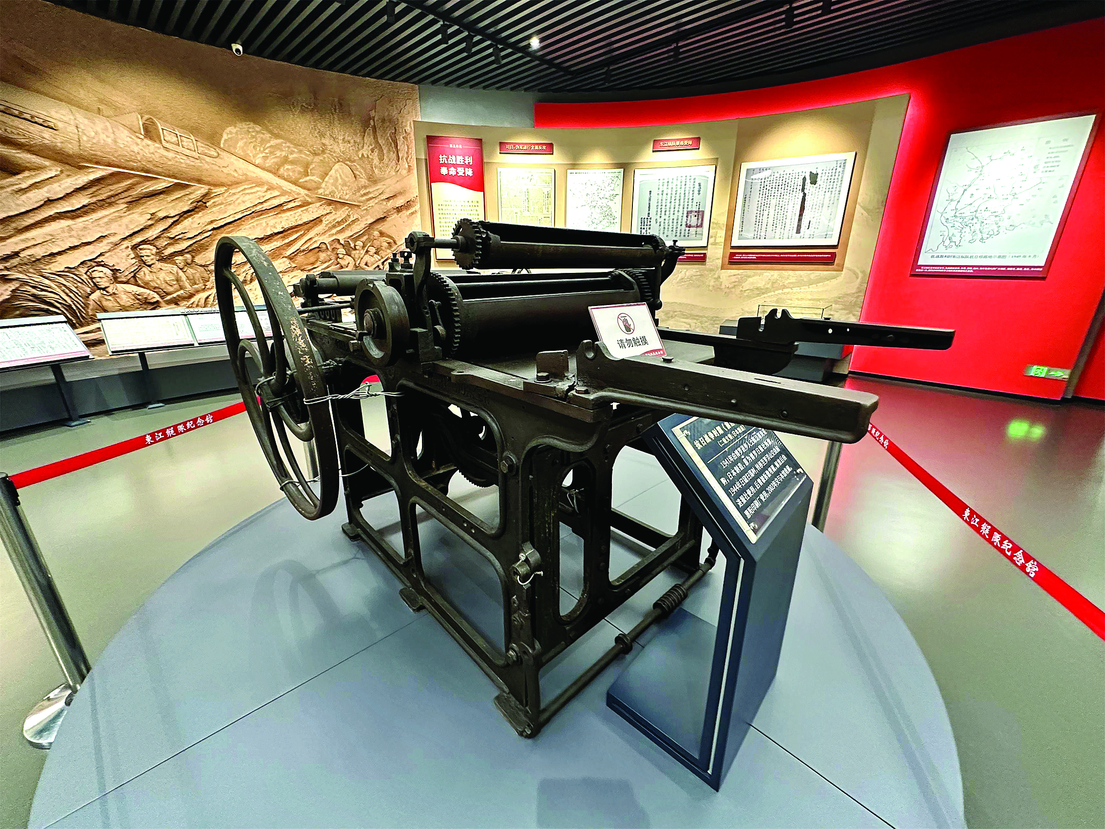 在東江縱隊(duì)紀(jì)念館內(nèi),一臺重達(dá)千斤、通體黝黑的印刷機(jī)格外引人注目。這是曾經(jīng)印制東江縱隊(duì)機(jī)關(guān)報《前進(jìn)報》的印刷機(jī),是該館的“鎮(zhèn)館之寶”、國家二級文物,更是東江縱隊(duì)在艱苦環(huán)境中堅(jiān)持文化抗戰(zhàn)的生動見證。如今,這臺印刷機(jī)依舊锃亮,仿佛在告訴每一位參觀者:鉛字與子彈一樣,可以擊穿黑暗。