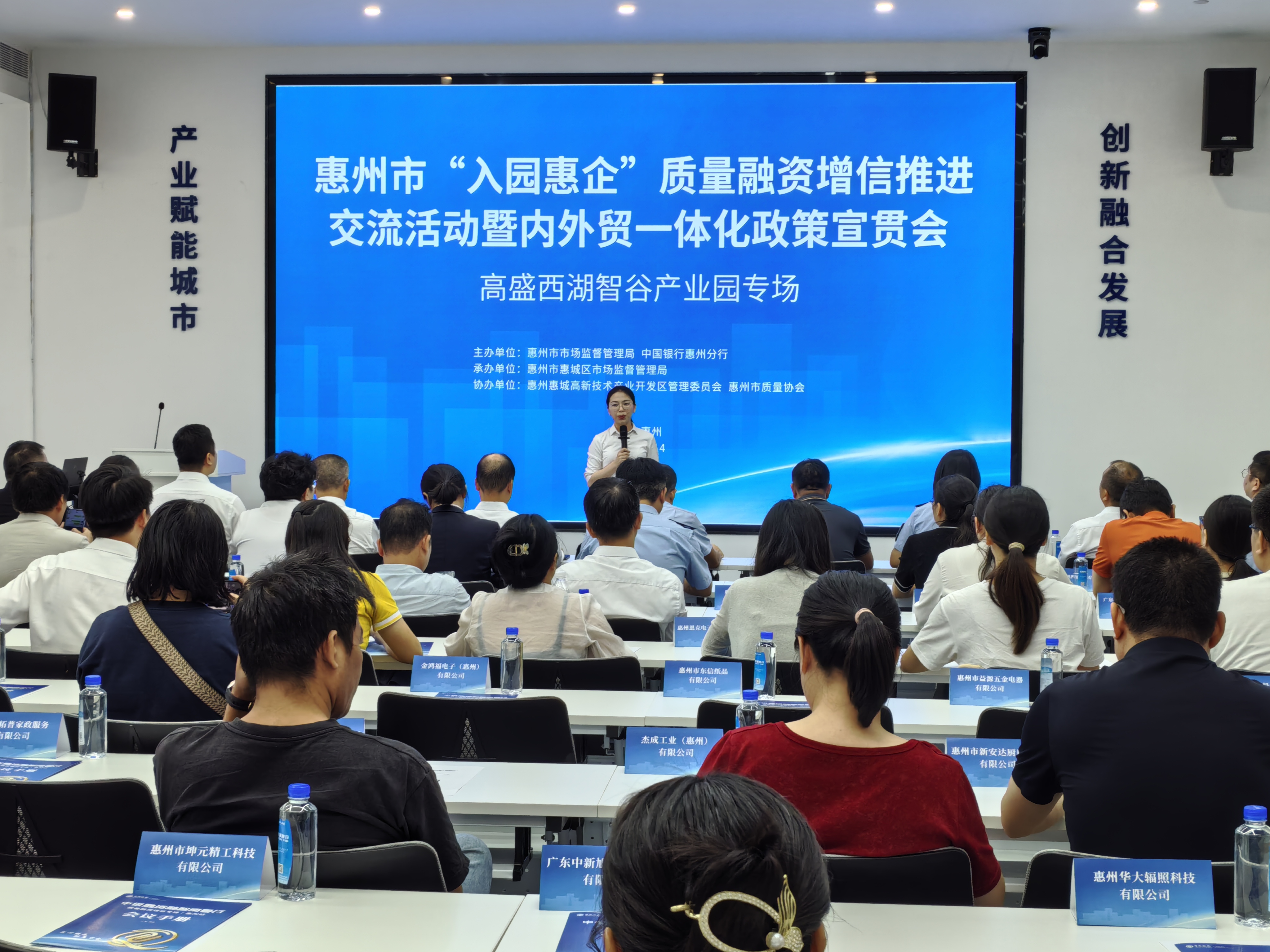 惠州市“入園惠企”質(zhì)量融資增信推進(jìn)交流活動暨內(nèi)外貿(mào)一體化政策宣貫會舉行